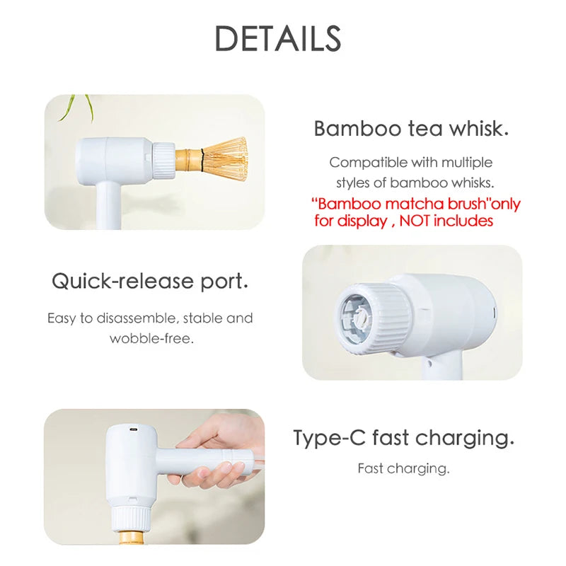 Electric Matcha Whisk Device Rechargeable Quickly Whisking Matcha Blender Tool for Home Beverage Shop DIY Tea-Making Tools