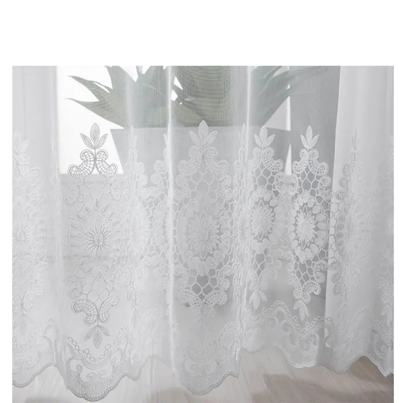 Embroidered Floral White Tulle Window Screen Curtain for Living Room Bedroom Luxury Sheer Voile Curtain Blind Drapes Door Decor