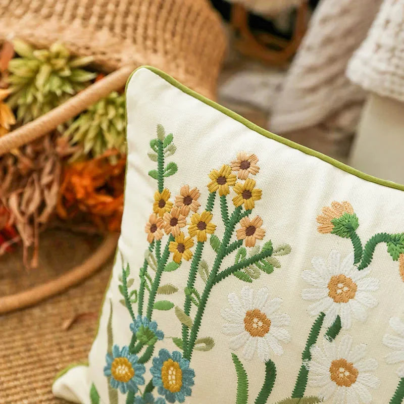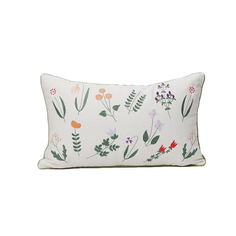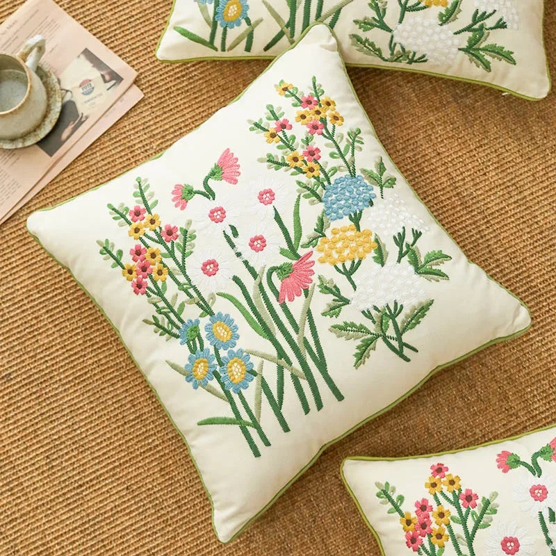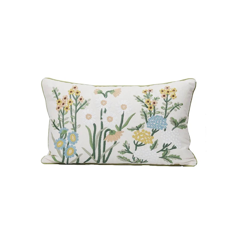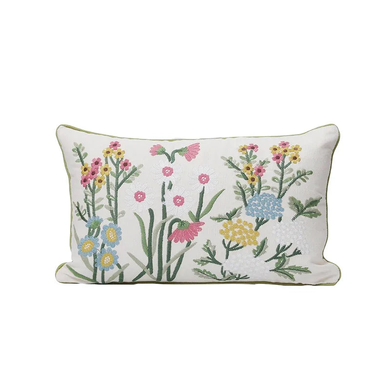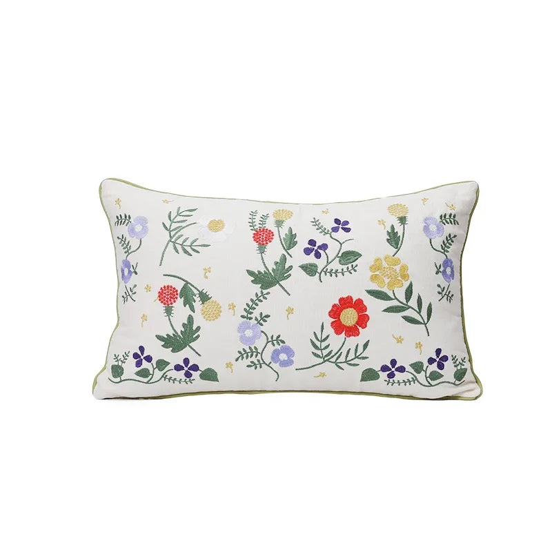 Embroidered Pastoral Cushion Cover for Sofa Car Bed Nordic Cotton Sofa Throw Pillowcase Home Decor Rectangle Pillow Cover 베개 케이스