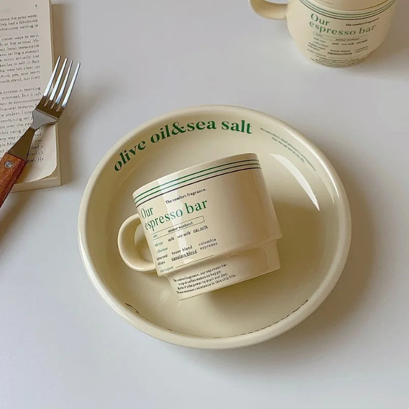 English Western Food Set Breakfast Plate French Vintage Soup Cup Coffee Mug Cream Style Tableware Yellow Ceramic Bowl