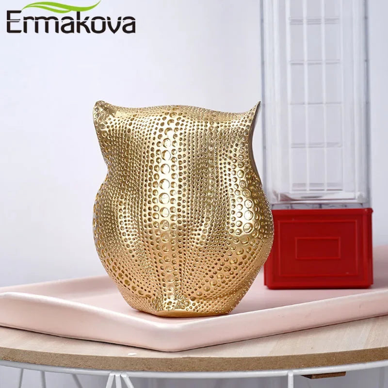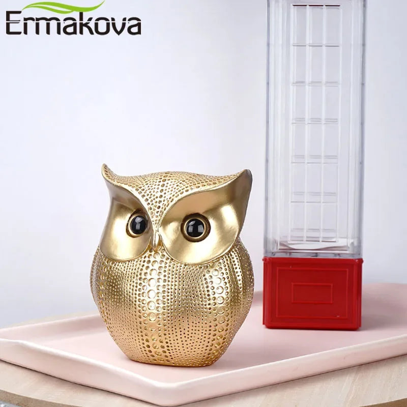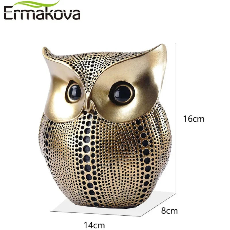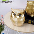 ERMAKOVA 16cm Nordic Golden Owl Statue Figurine Resin Animal Sculpture Crafts Home Living Room Office Decoration Gift