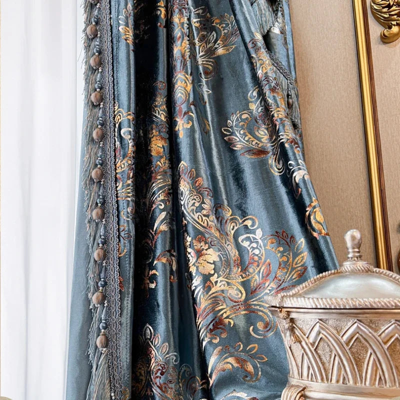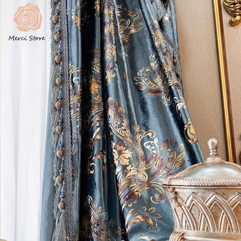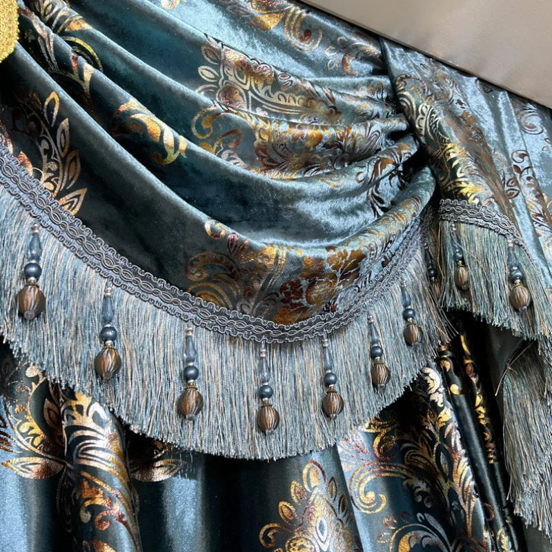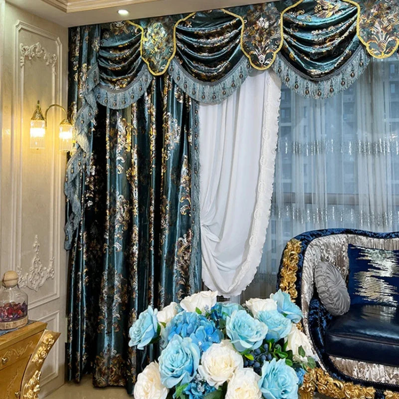 European Blue Velvet Embroidered Baroque Tulle Valance Curtains for Living Dining Room Bedroom Custom Thermal Insulated Drapes