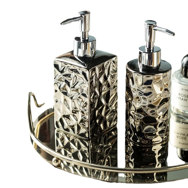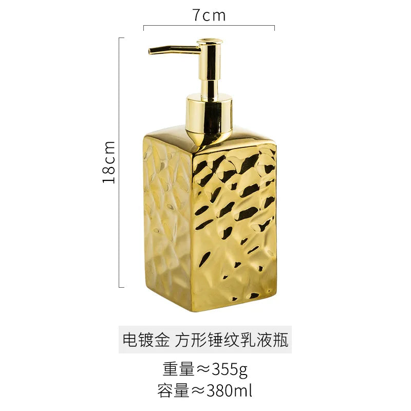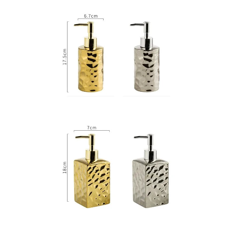European Electroplating Gold Round Ceramic Lotion Bottle Press Hand Sanitizer Soap Dispenser Bathroom Shampoo Bottling Bathroom