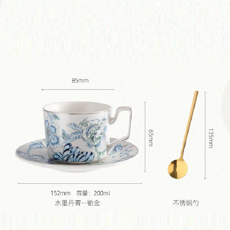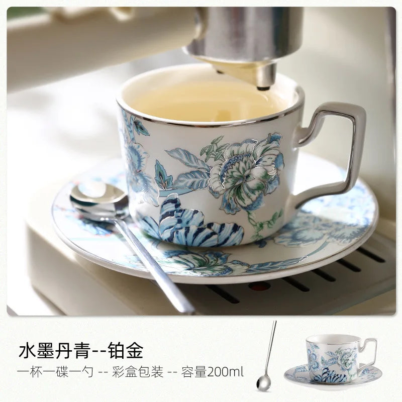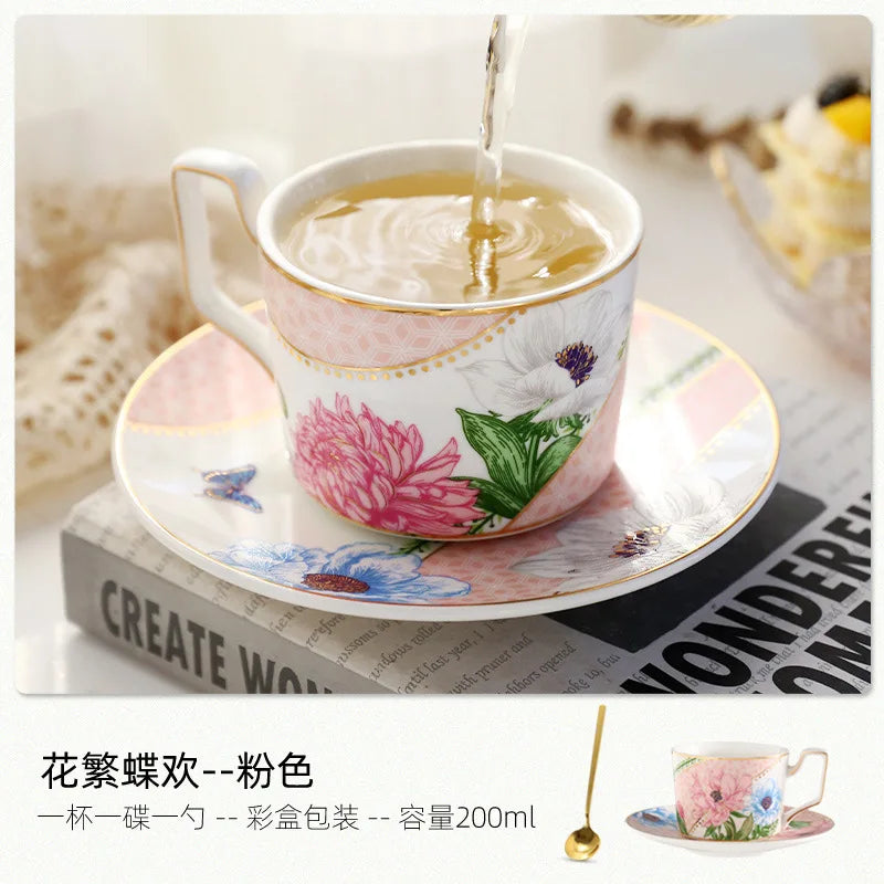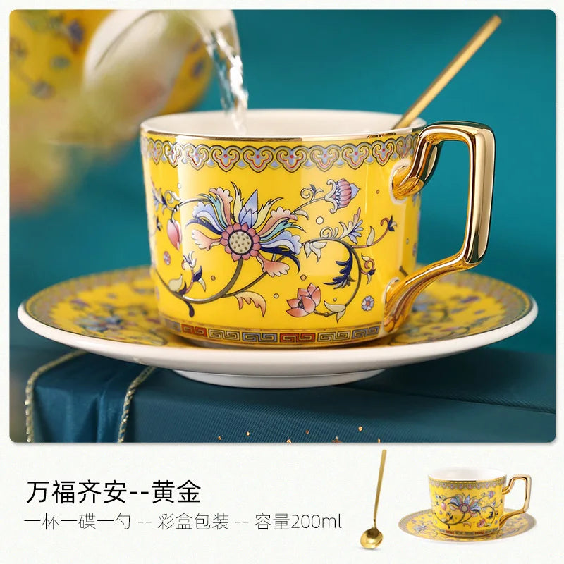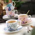 European Luxury Pastoral Ceramic Coffee Cup Set French Elegant Tea Cups Gold-plated Ceramic Latte Ceramic Flower Coffee Mug
