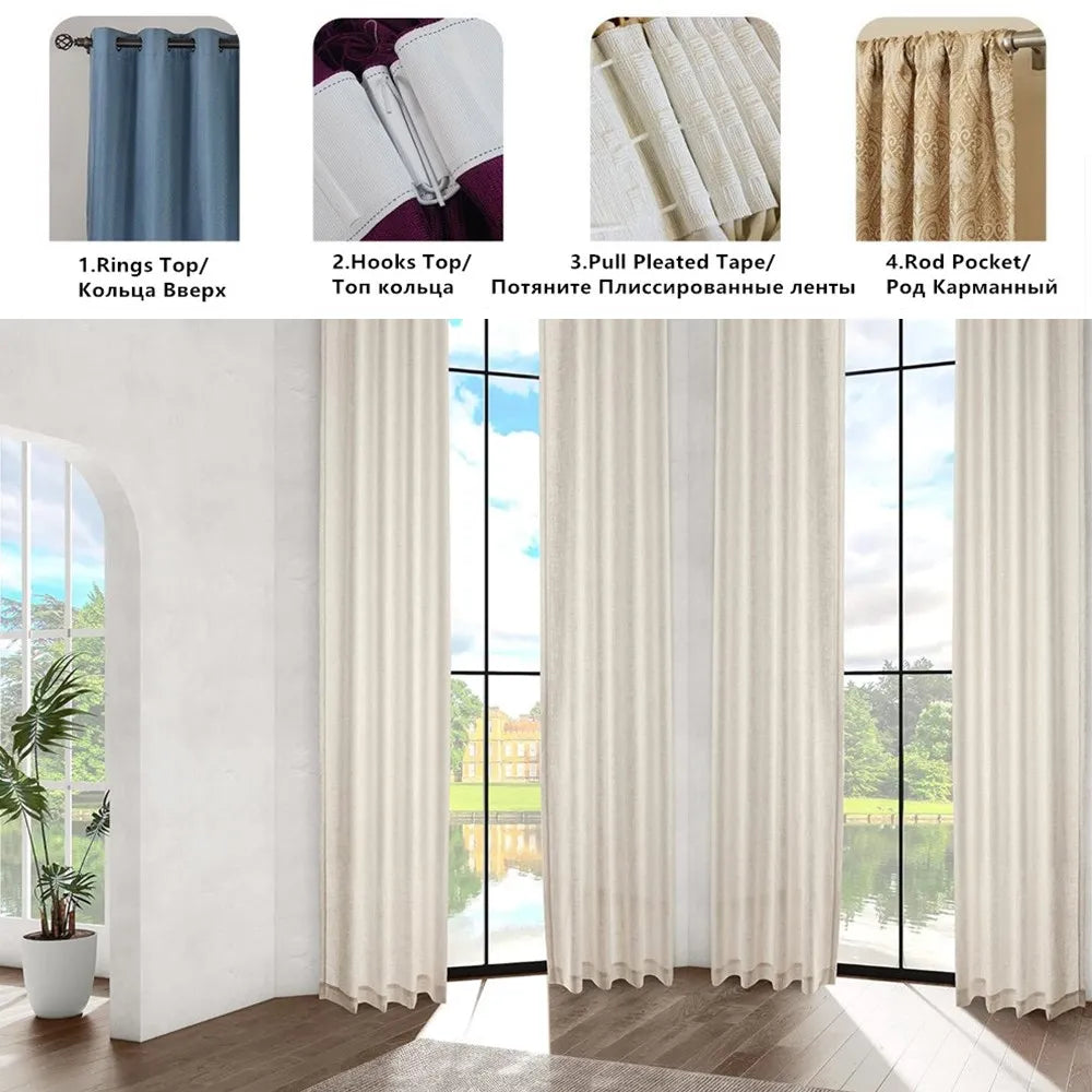 Extra Long 300cm Height 400cm Height Faux Linen Sheer Curtains - Custom Long High Ceiling Curtain Living Room, Dining Room