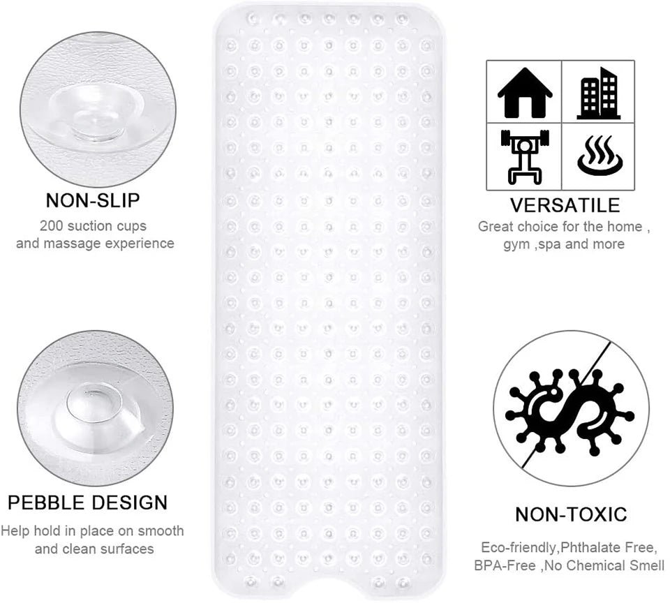 Extra Long Anti Slip Bath Tub Mat Bathroom Shower Mat Transparent Antibacterial Machine Washable for Bathroom,Kid Toddler Senior
