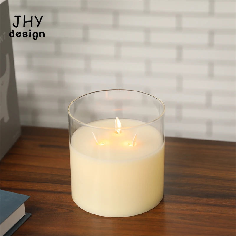 Flameless Candles Battery Operated Flickering Candles with 6-Hour Timer Real Wax Moving Wick Glass Candle for Home Decor
