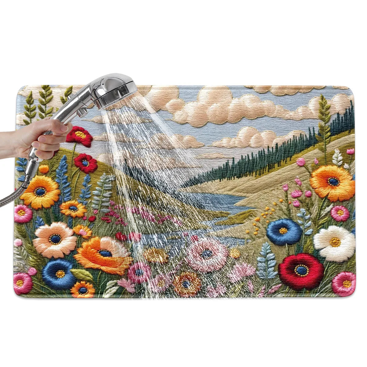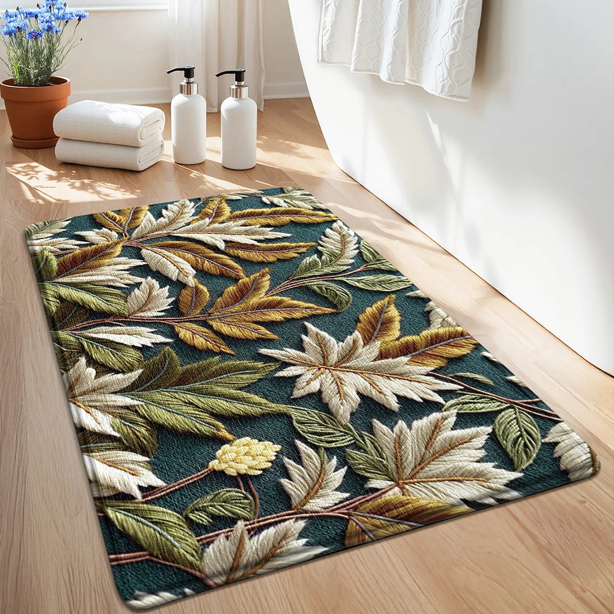 Floral Leaf Bath Mat, Printed Sponge Design, Ultra Soft & Fade Resistant, Super Absorbent, Quick Dry, Decorative Bathroom Carpet