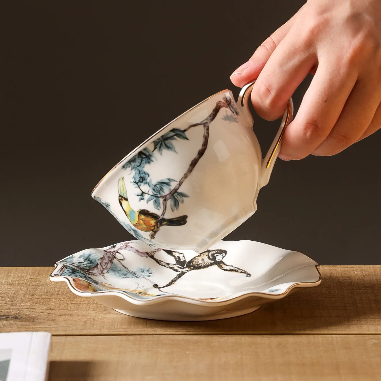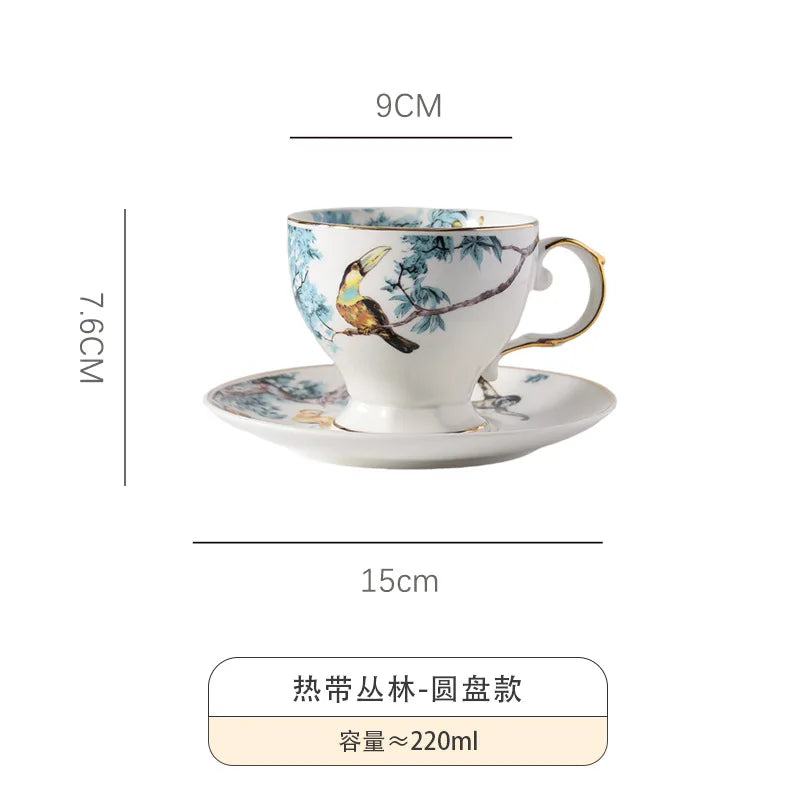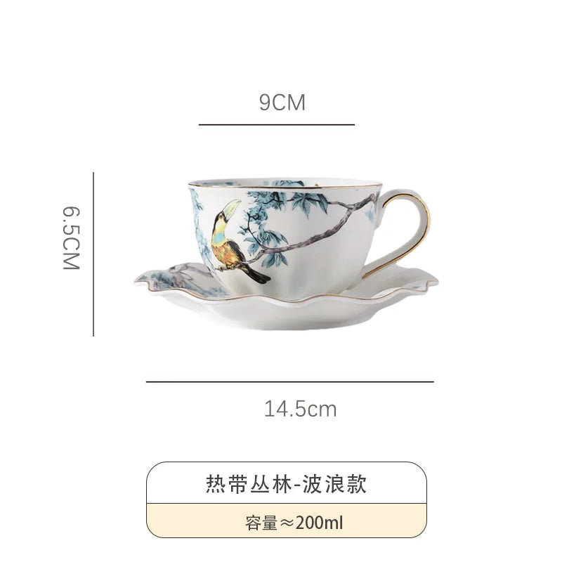 Flower and bird coffee cups and saucers, hand-painted ceramic mugs, household afternoon tea cups