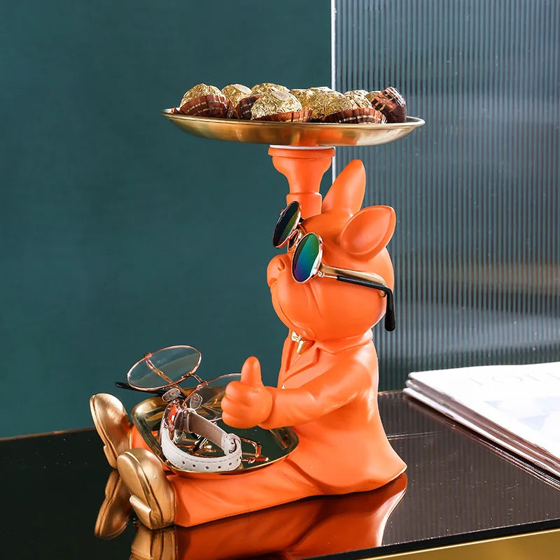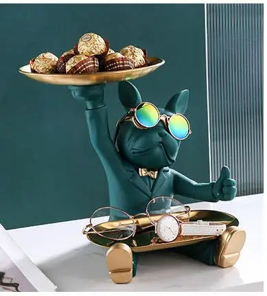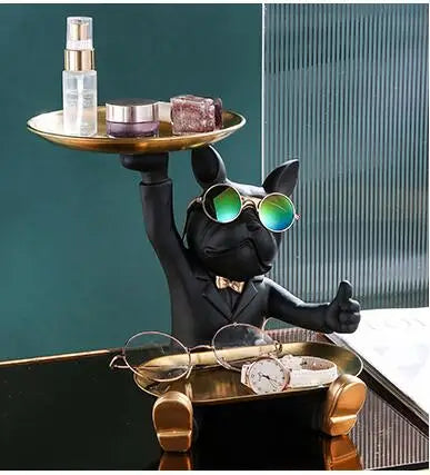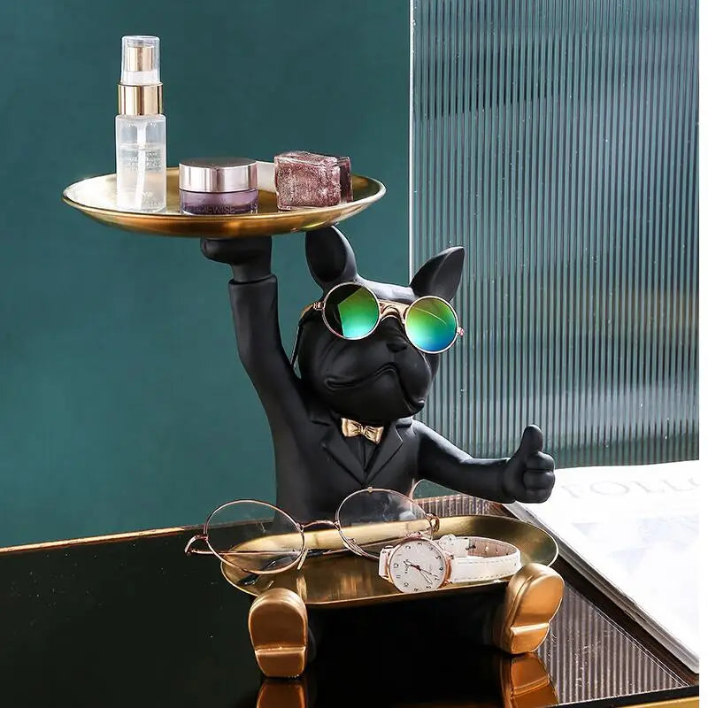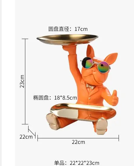 French Bulldog Sculpture Dog Statue with Tray and Keys Holder Storage Gift Home Decor Ornaments Rood Decor Animal Figurine