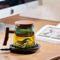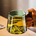 GIANXI 400ml Glass Tea Cup Walnut Anti Scald Handle Thickened Cup Chinese Far Mountain Design High Borosilicate Glass Tea Cup