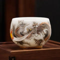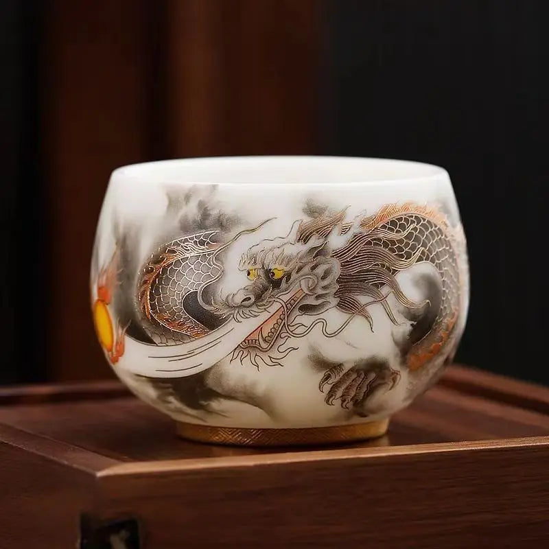 Gilded Auspicious Dragon Spitting Beads Single Cup Chinese Style Sheep Fat Jade Tea Cup Luxury and Retro Business Gifts