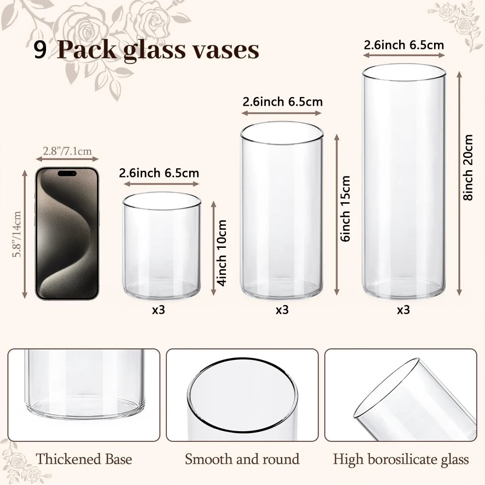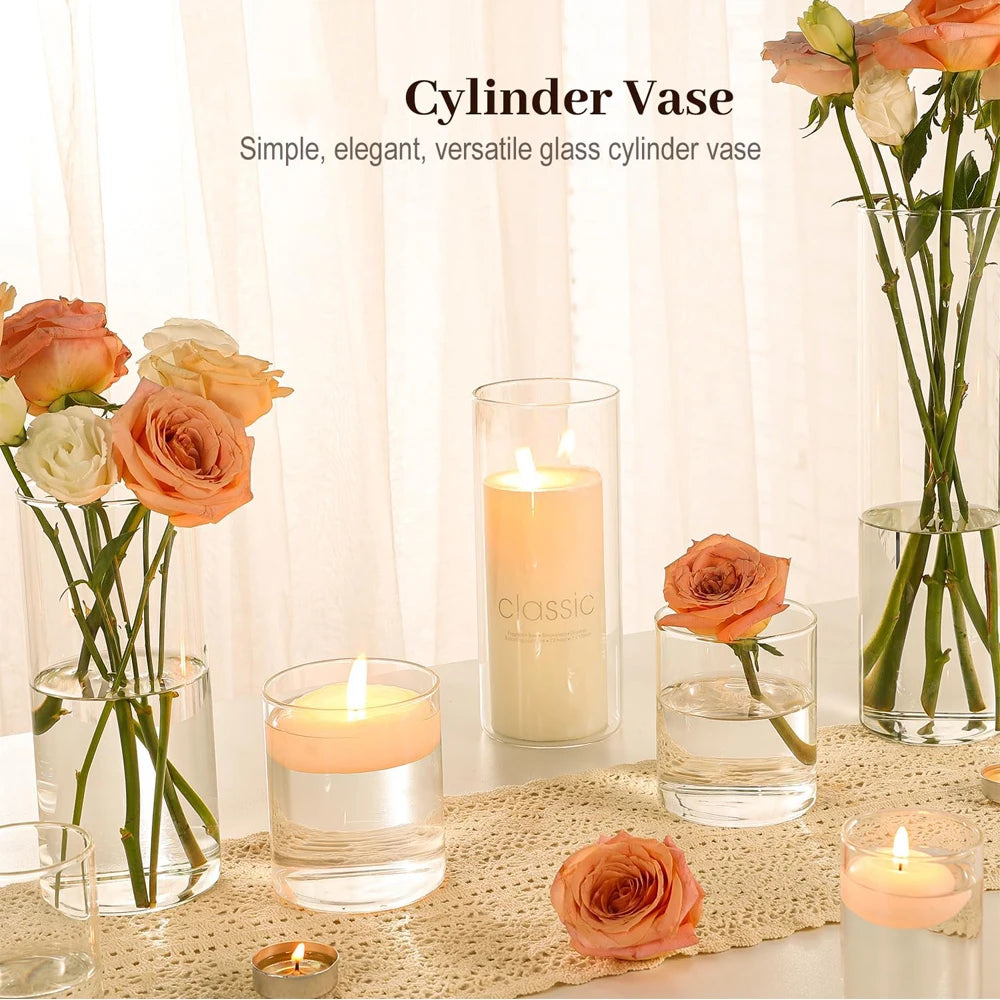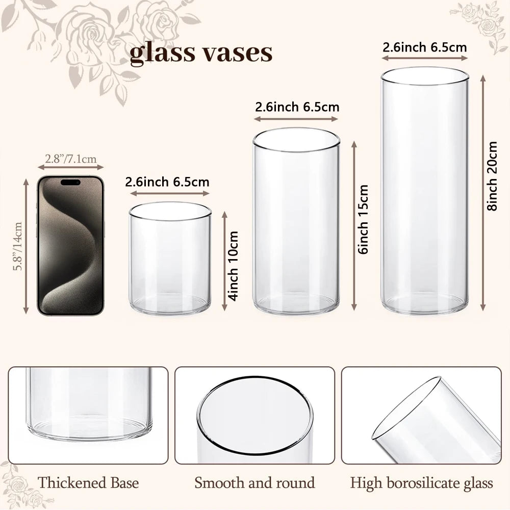 Glass Cylinder Vases 4/6/8 Inch Tall Clear Vases for Centerpieces Weeding Decoration, Clear Glass Flower Vases Hurricane