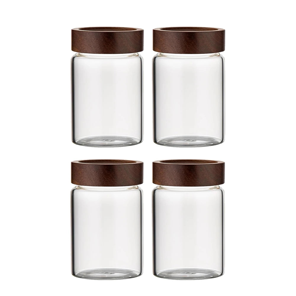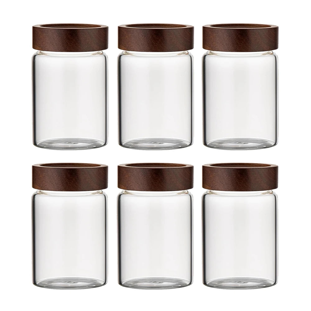 Glass Food Storage Jars with Screw Airtight Seal Acacia Wood Lids,Spice Jars with Lids, Organization for Jars Bottles Containers