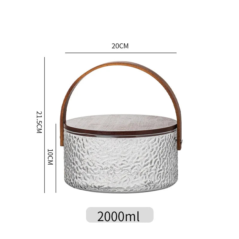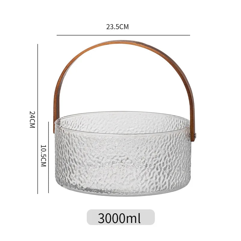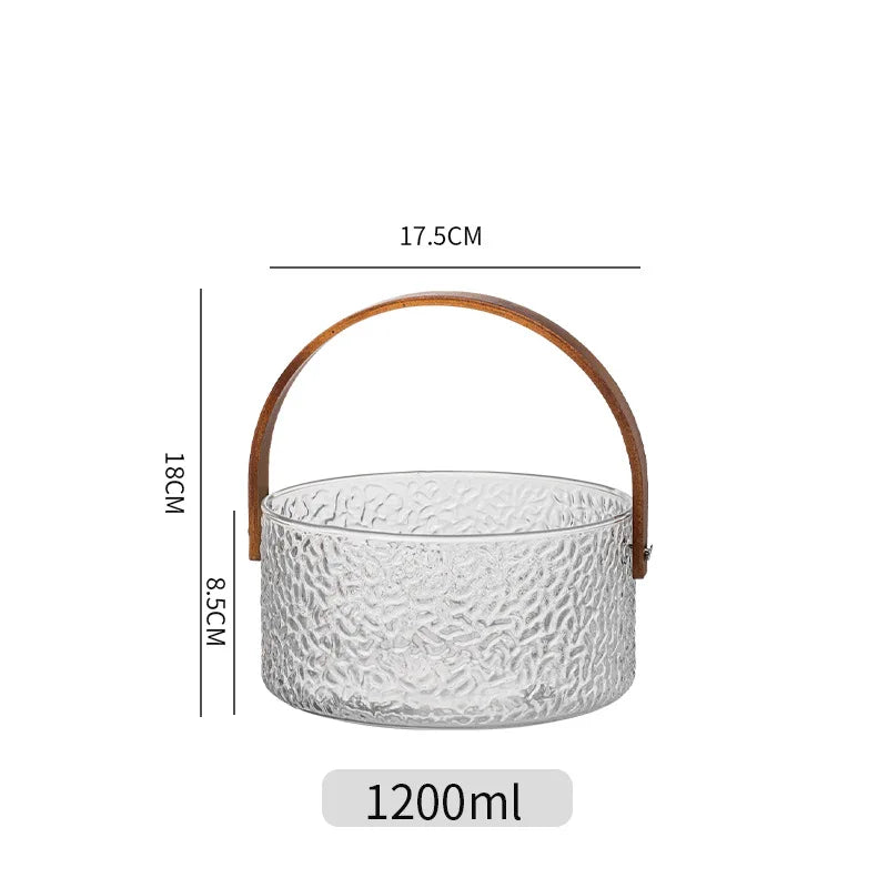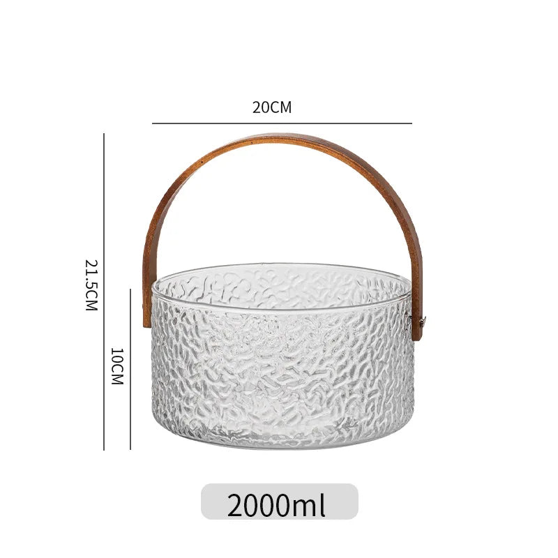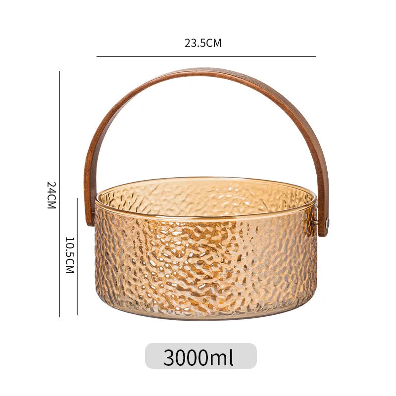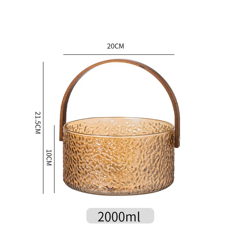 Glass Ice Fruit Bucket Handheld Fruit Circular Ice Bucket Fruit Basin, Tea Bucket Container