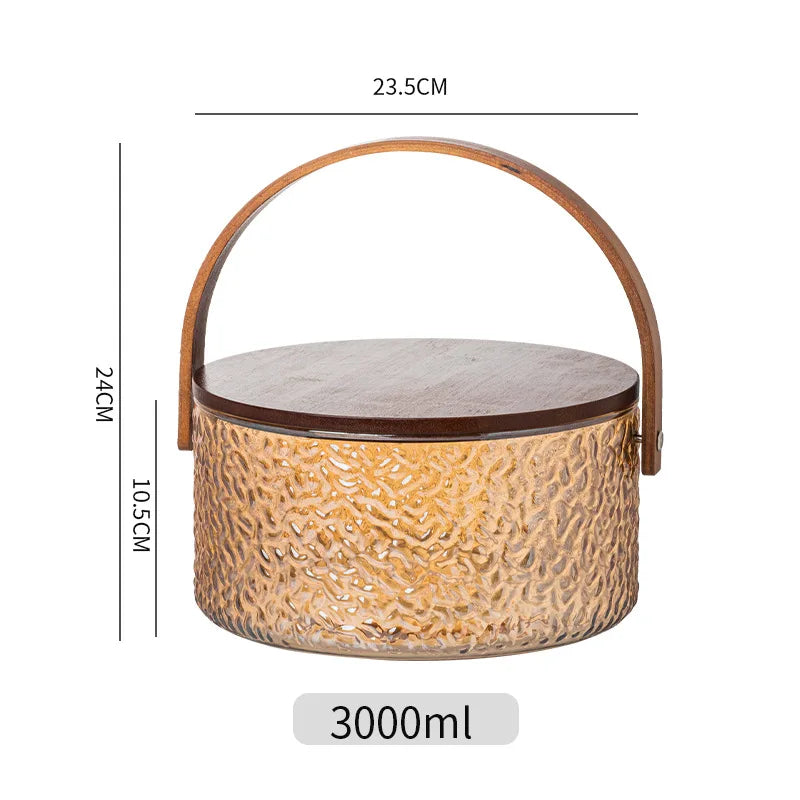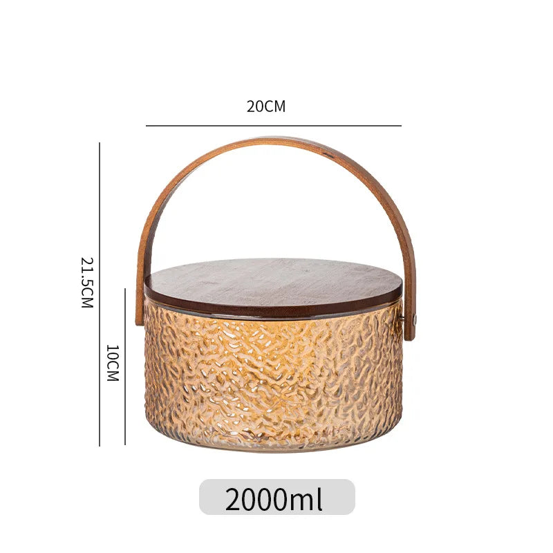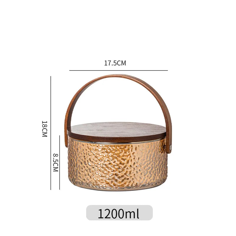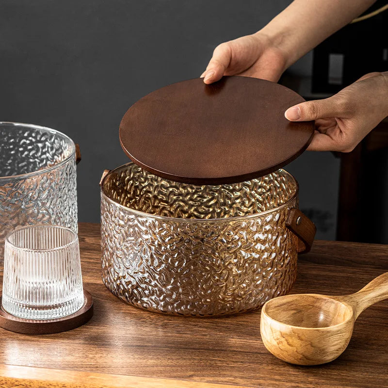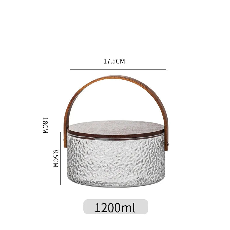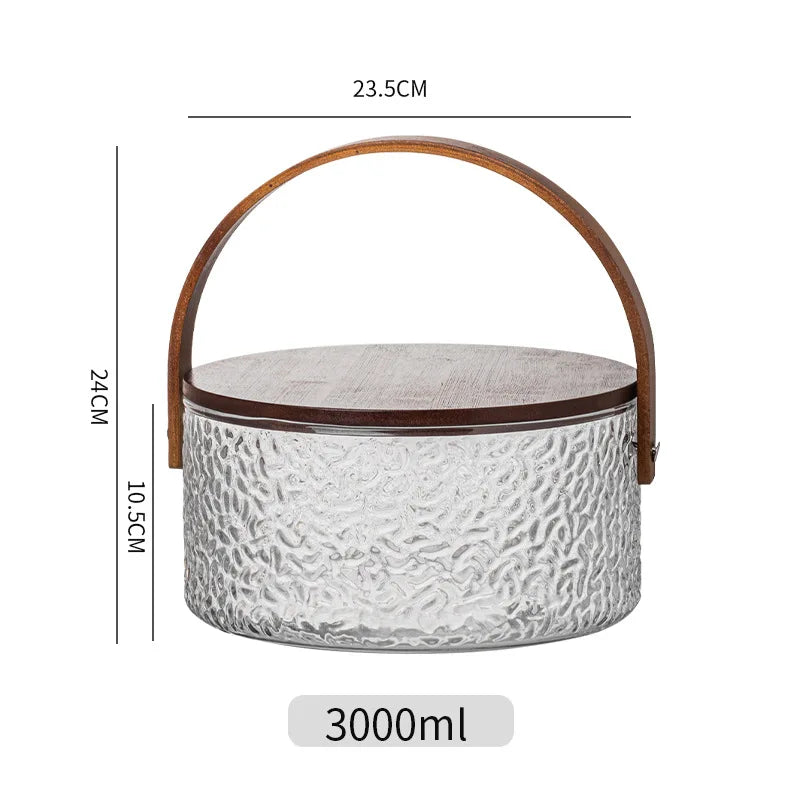 Glass Ice Fruit Bucket Handheld Fruit Circular Ice Bucket Fruit Basin, Tea Bucket Container