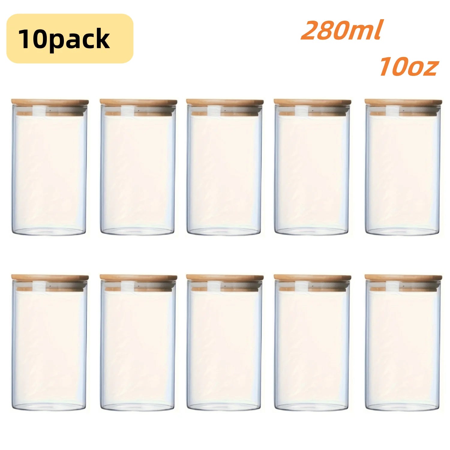 Glass jar with bamboo lid 280ml 10oz glass food storage container, suitable for kitchen spice jars, coffee jars, dried fruit jar