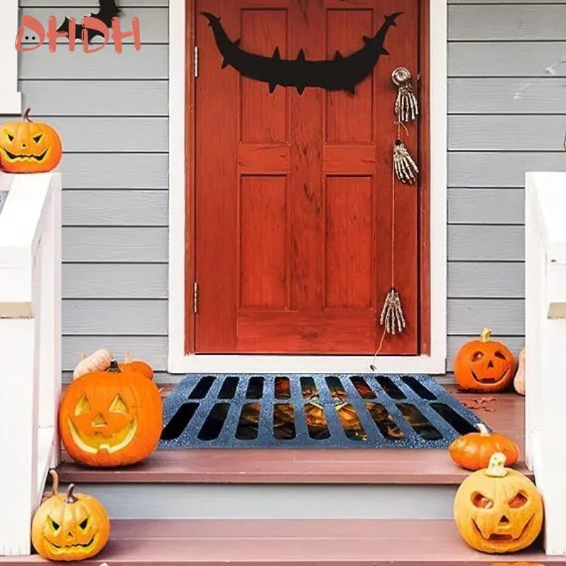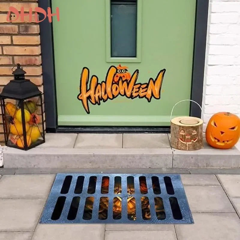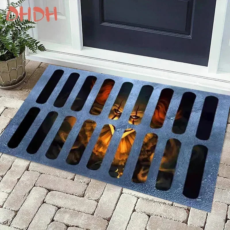 Halloween 3D Manhole Cover Horror Mat Halloween Carpet Clown Trap Vision Doormat Kitchen Bathroom Bedroom Decorative Floor Mats