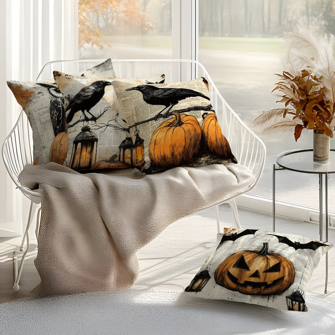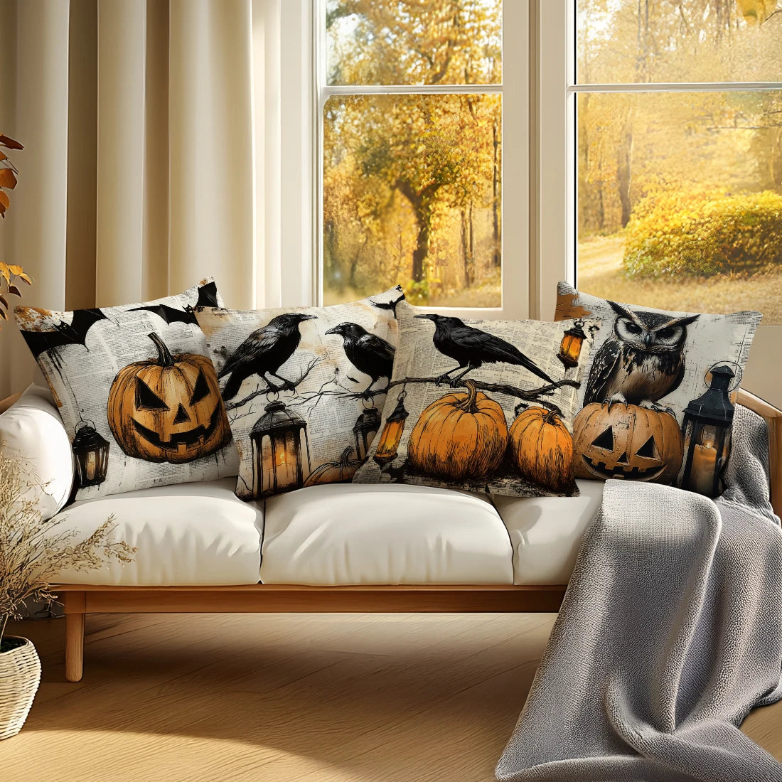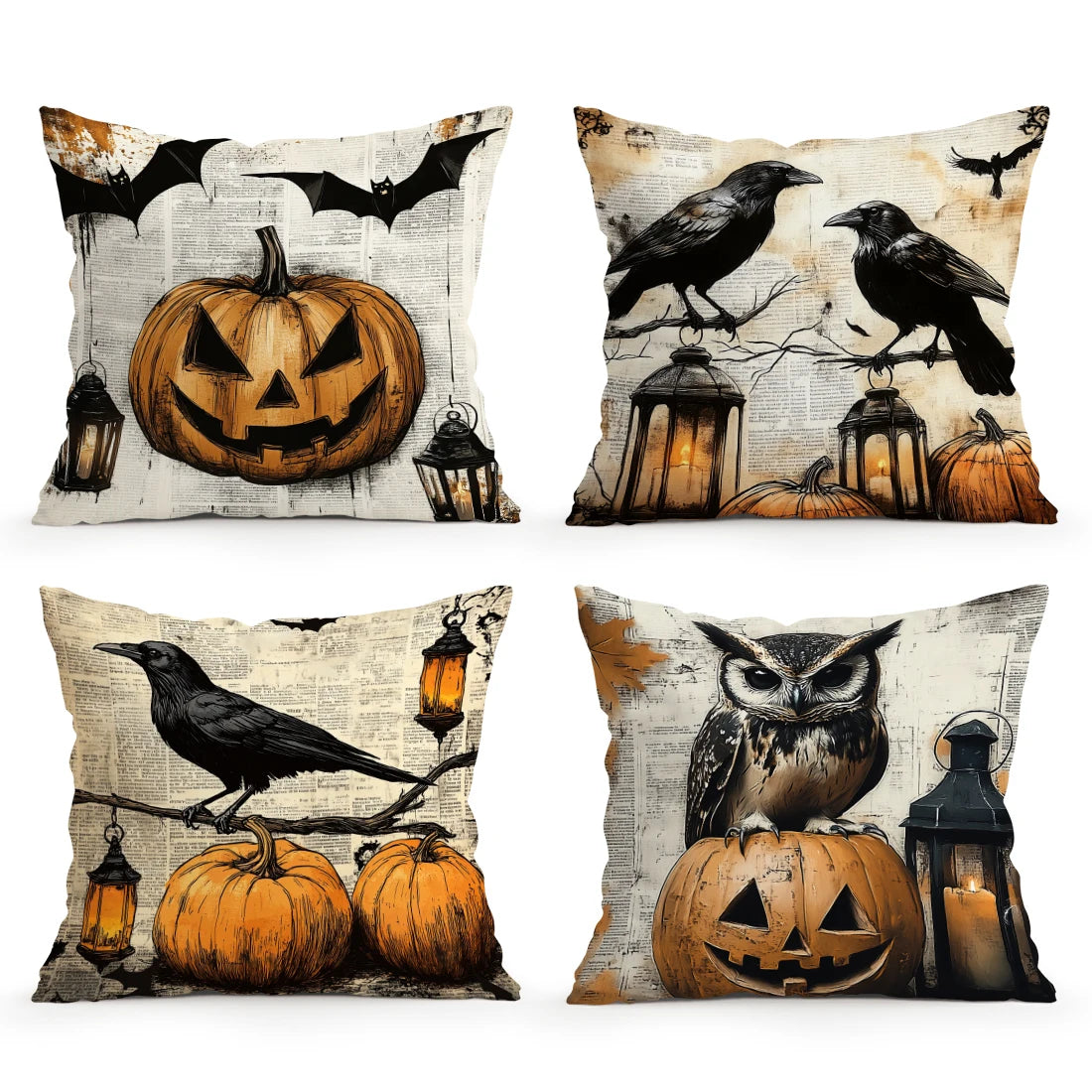 Halloween Crow Owl Cushion Covers 18x18Inch Couch Throw Pillow Case For Car Pillowcase Living Room Halloween Decoration
