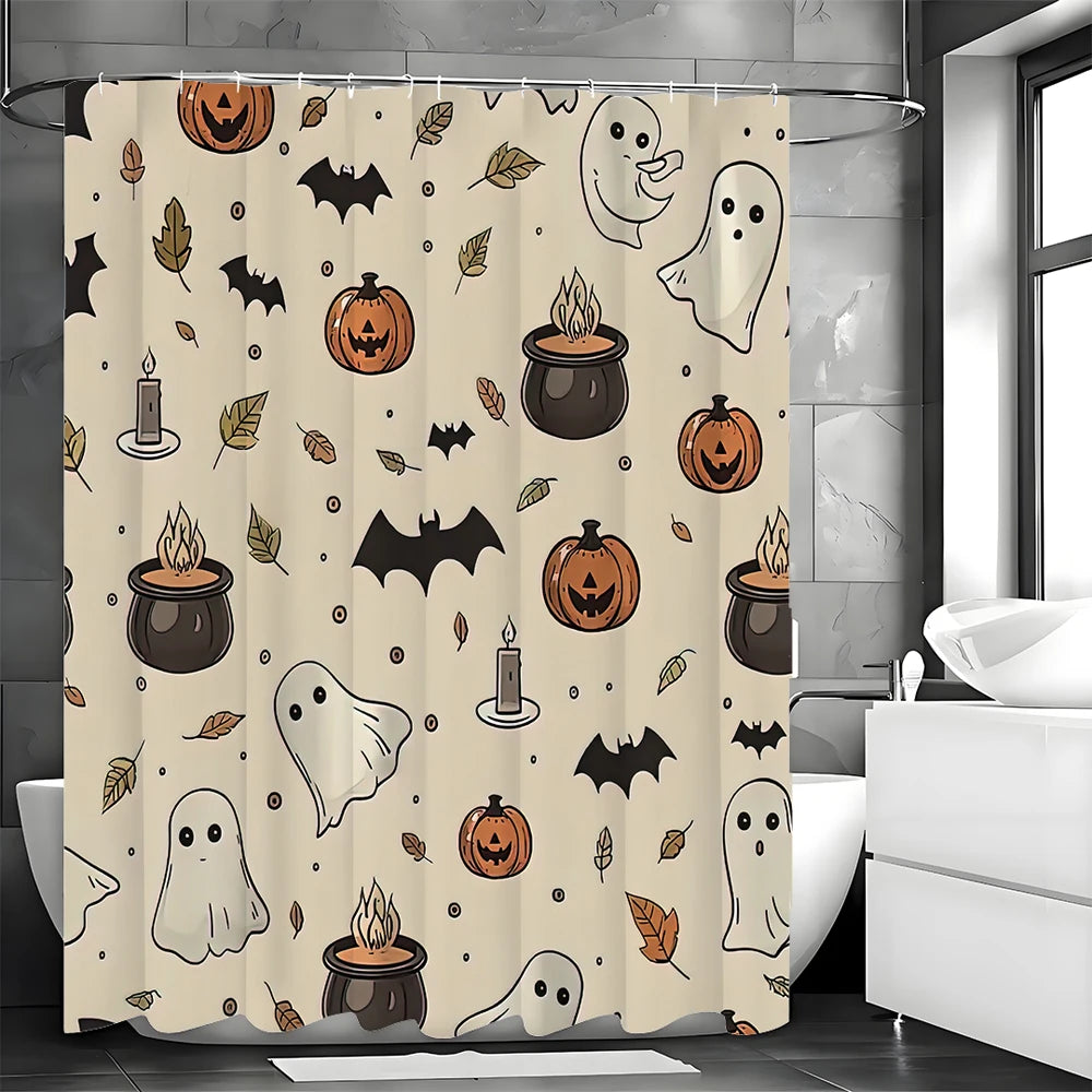 Halloween Cute Skeleton Ghost Bathroom Shower Curtain Scary Pumpkin Bat Bathtub Alchemy Witchcraft Decoration Waterproof Polyest