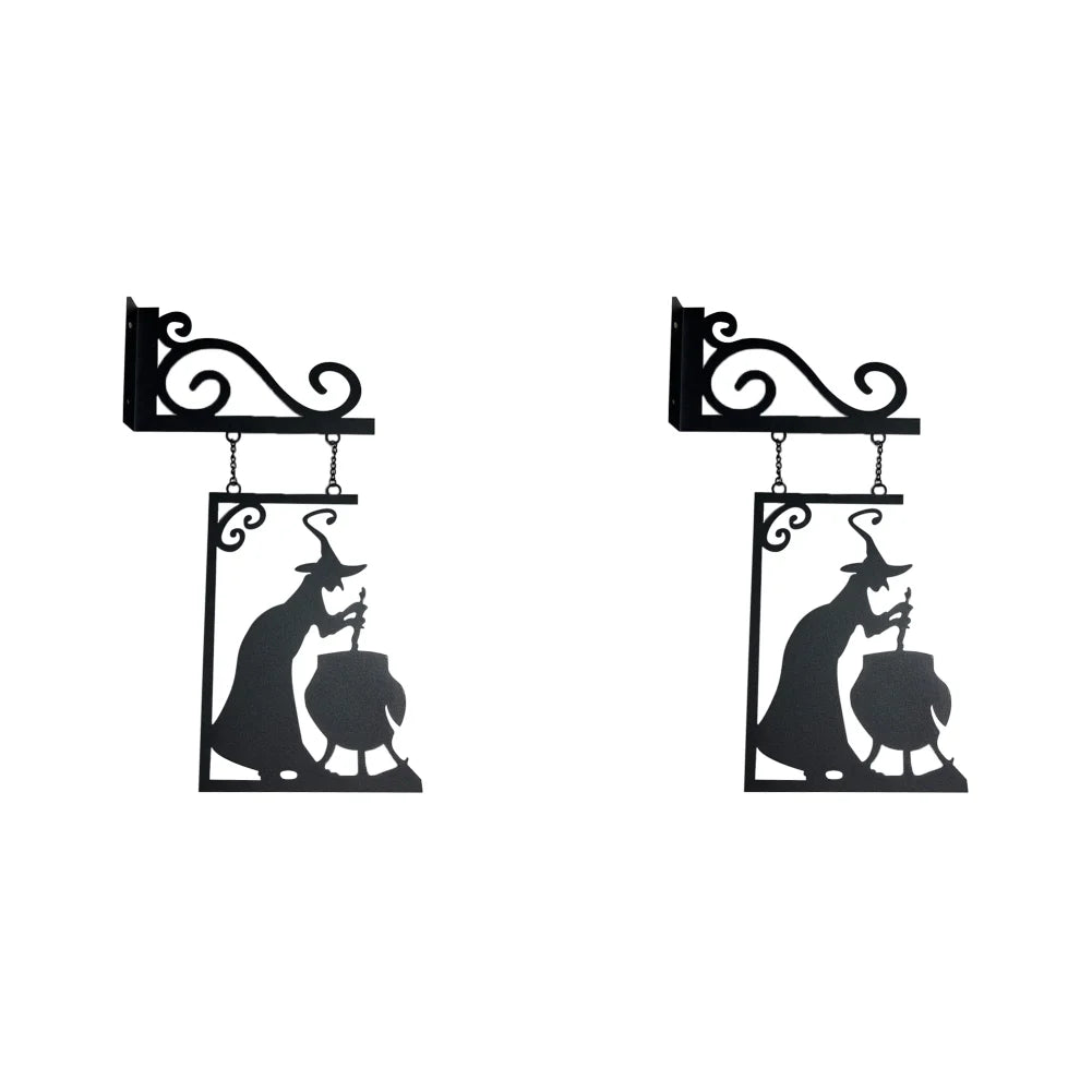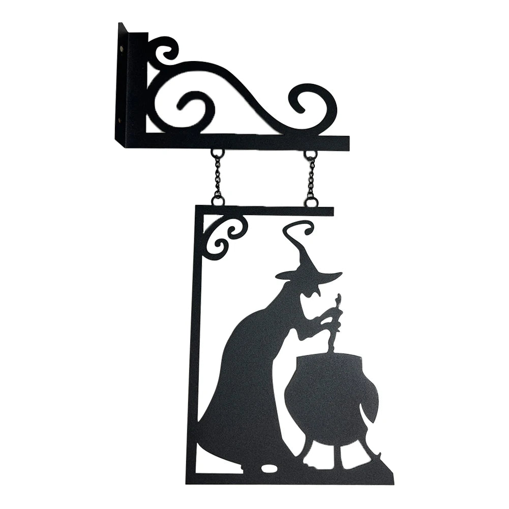 Halloween Metal Sign Witch Shape Iron Witch Boiler Silhouette Wall Mural Spooky Mysterious Witch Hanging Signage Horror