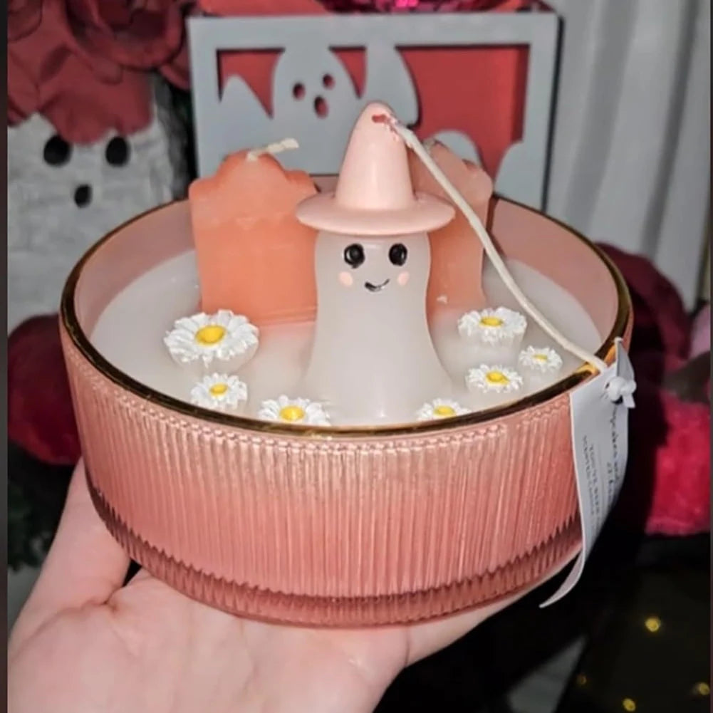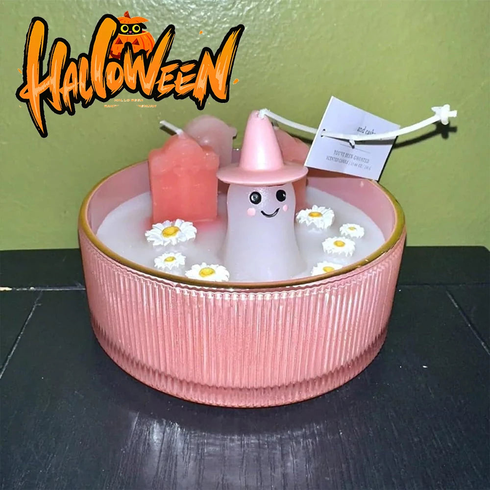 Halloween Pink Ghost Candle Modern Art Simulation Craft Cartoon Candle Home Bedroom Living Room Candlestick Decoration New