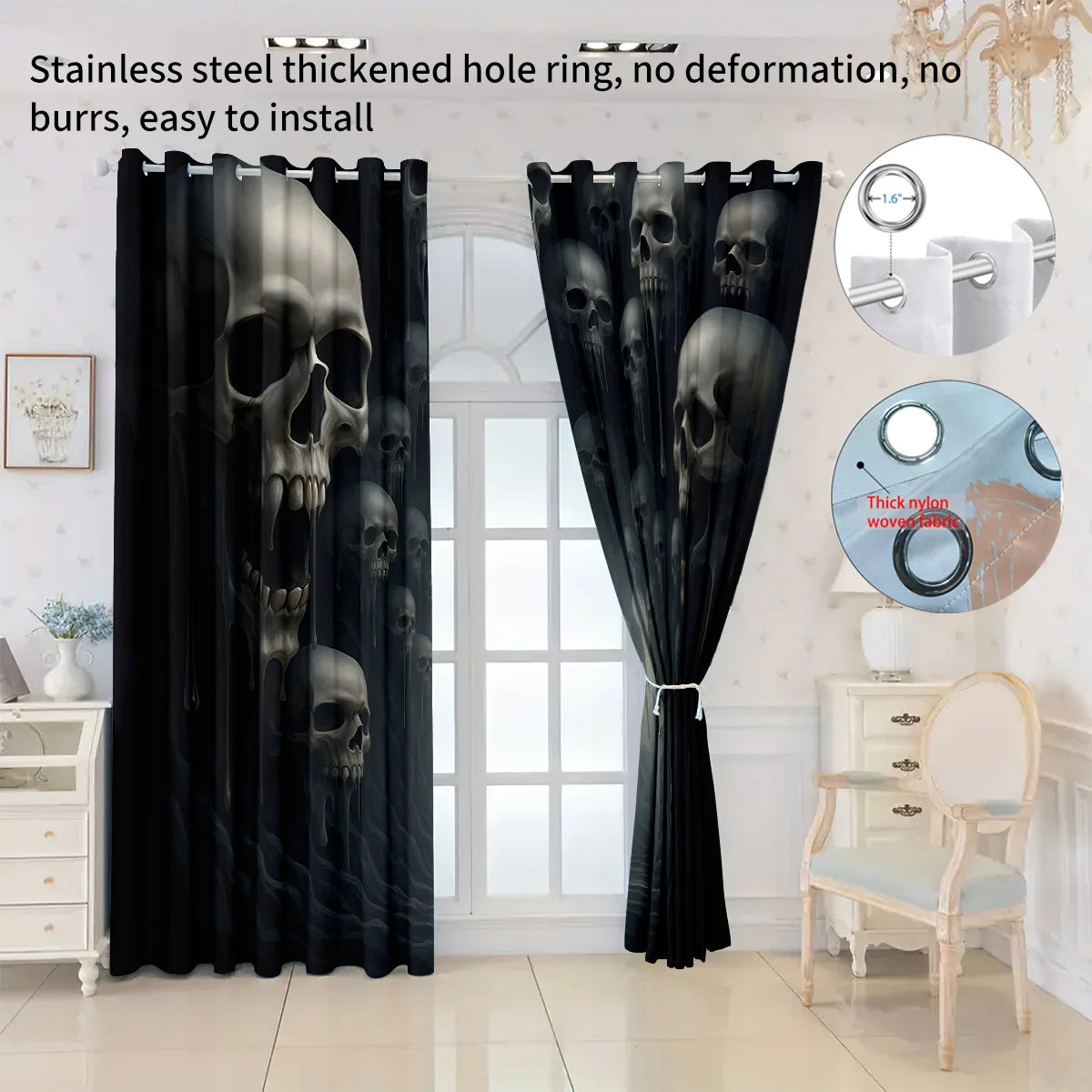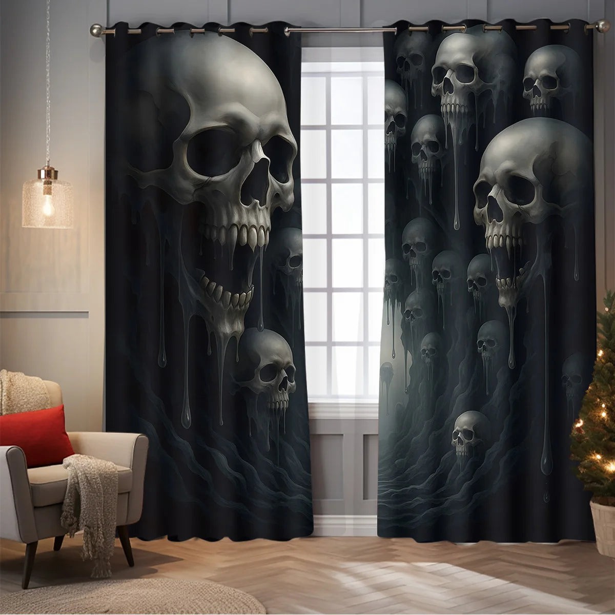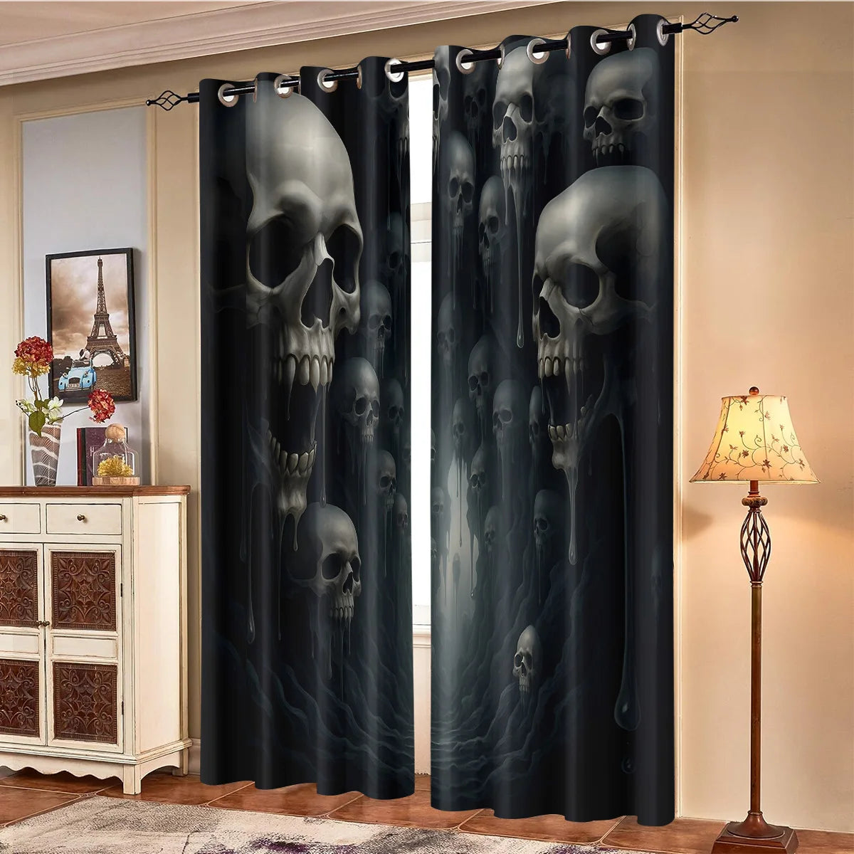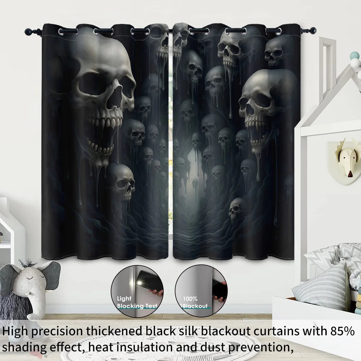 Halloween Scary Horror Gothic Grommet Thermal Insulated Drapes Darkening Window Curtain for Bedroom,2 Panels 84x84 Inch