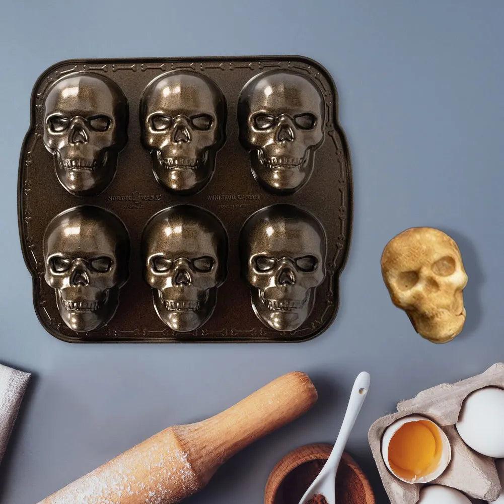 Halloween Skull Cake Pan Molds 6 Cavity Skeleton Chocolate Molds Non-Stick Candy Maker Stainless Steel for Home Kitchen