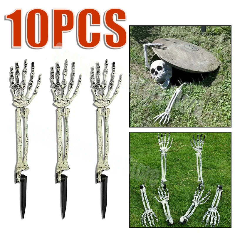 Halloween Skull Skeleton Head Realistic Human Hand Arms for Halloween Party Home Garden Lawn Decor Haunted House Horror Props