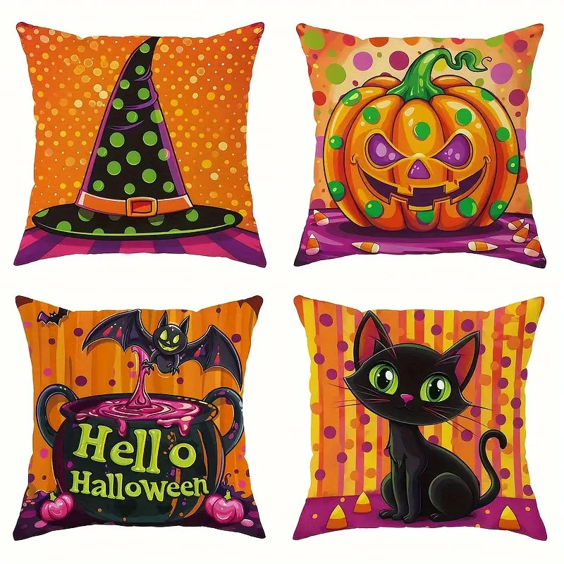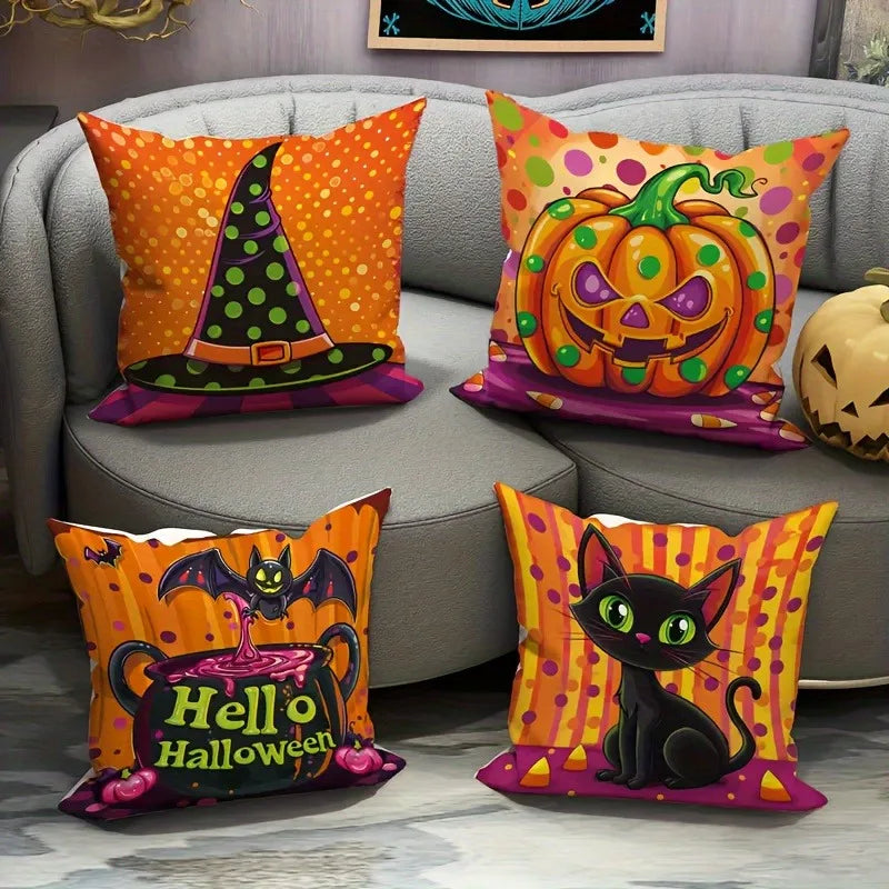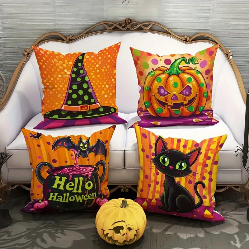 Halloween Themed Pillowcases: Witch Hat, Pumpkin, Cauldron & Black Cat Designs Sofa cushion cover holiday party decoration gift