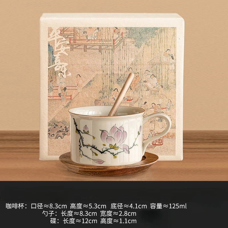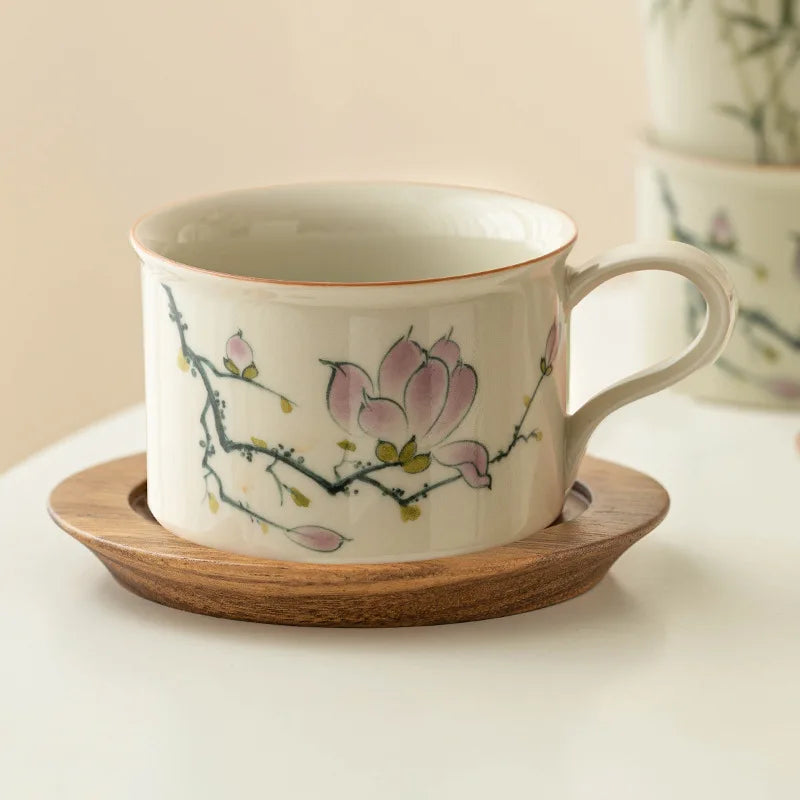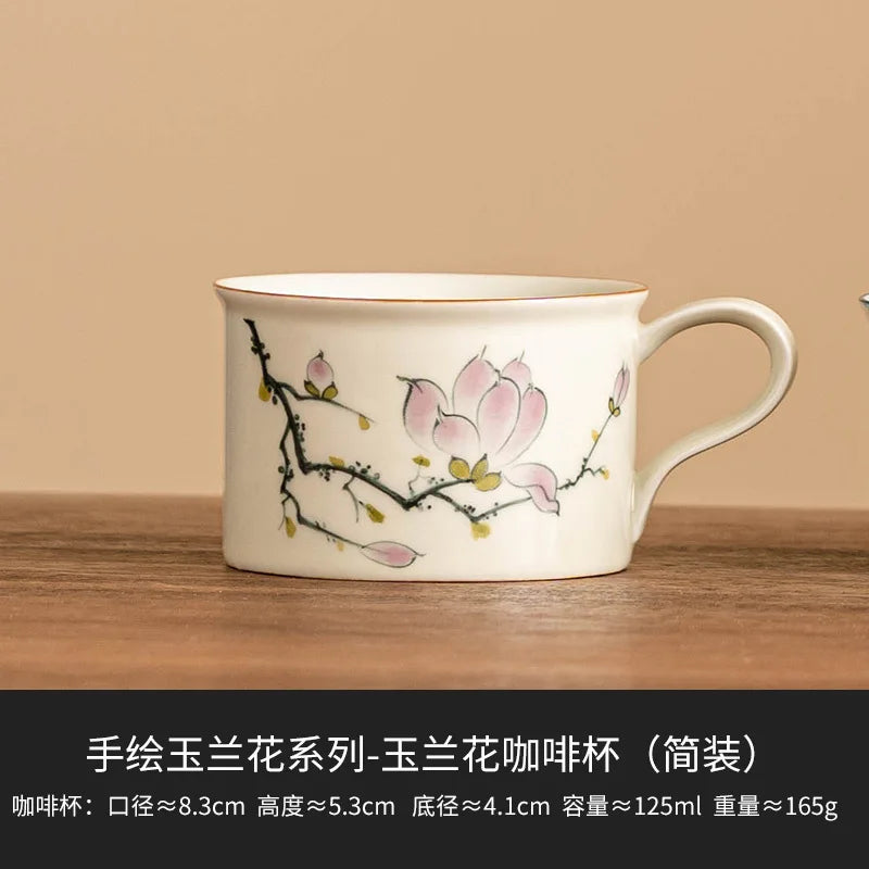Hand-painted Magnolia Coffee Cup and Saucer Set Latte Cup Exquisite High-end Afternoon Tea Ceramic Mug