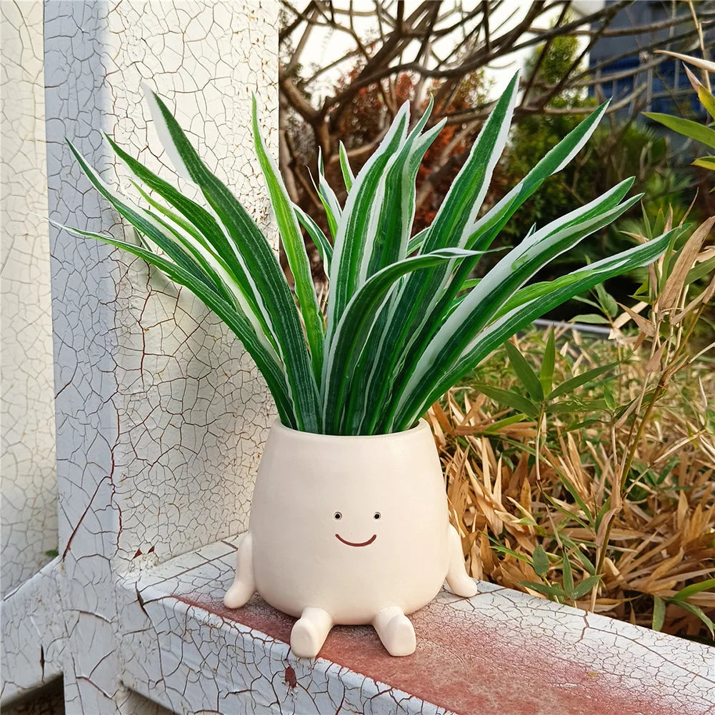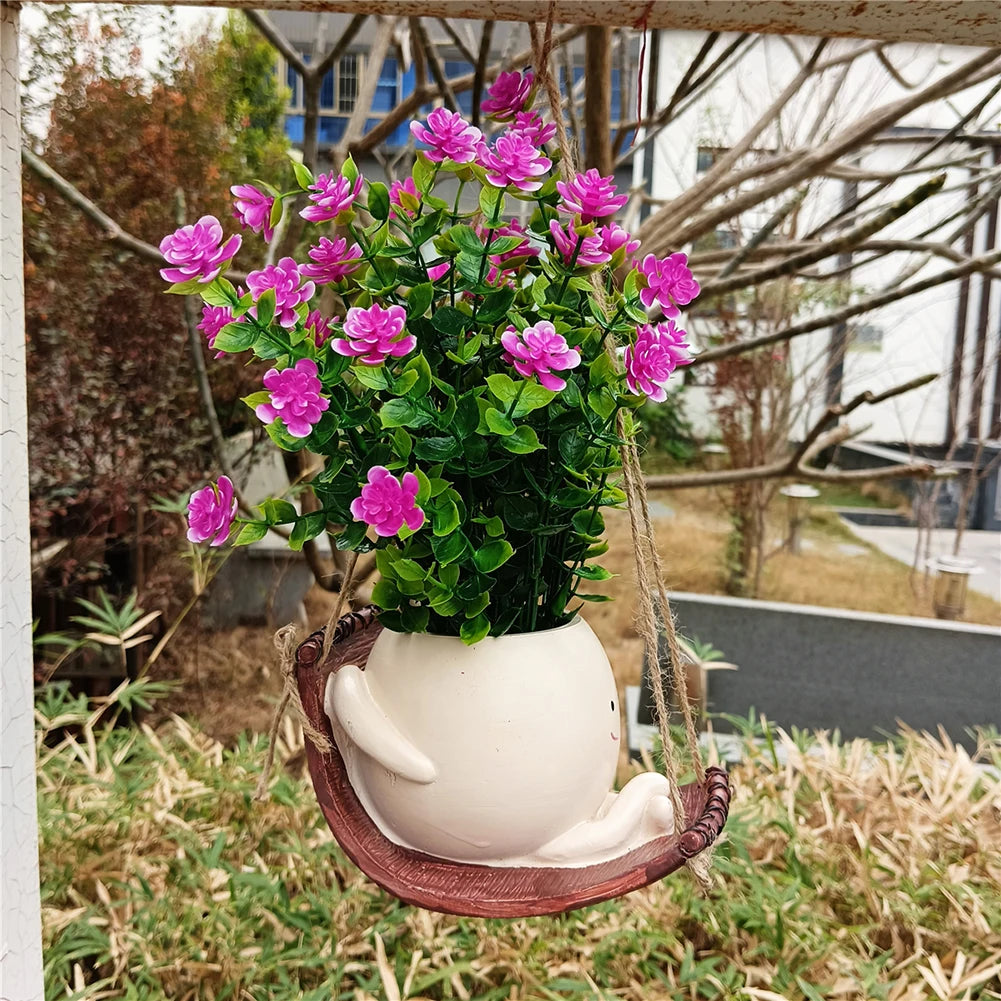 Hanging Hammock Planter Resin Swing Smile Face Planter Creative Smile Face Flower Container for Indoor Outdoor Plant
