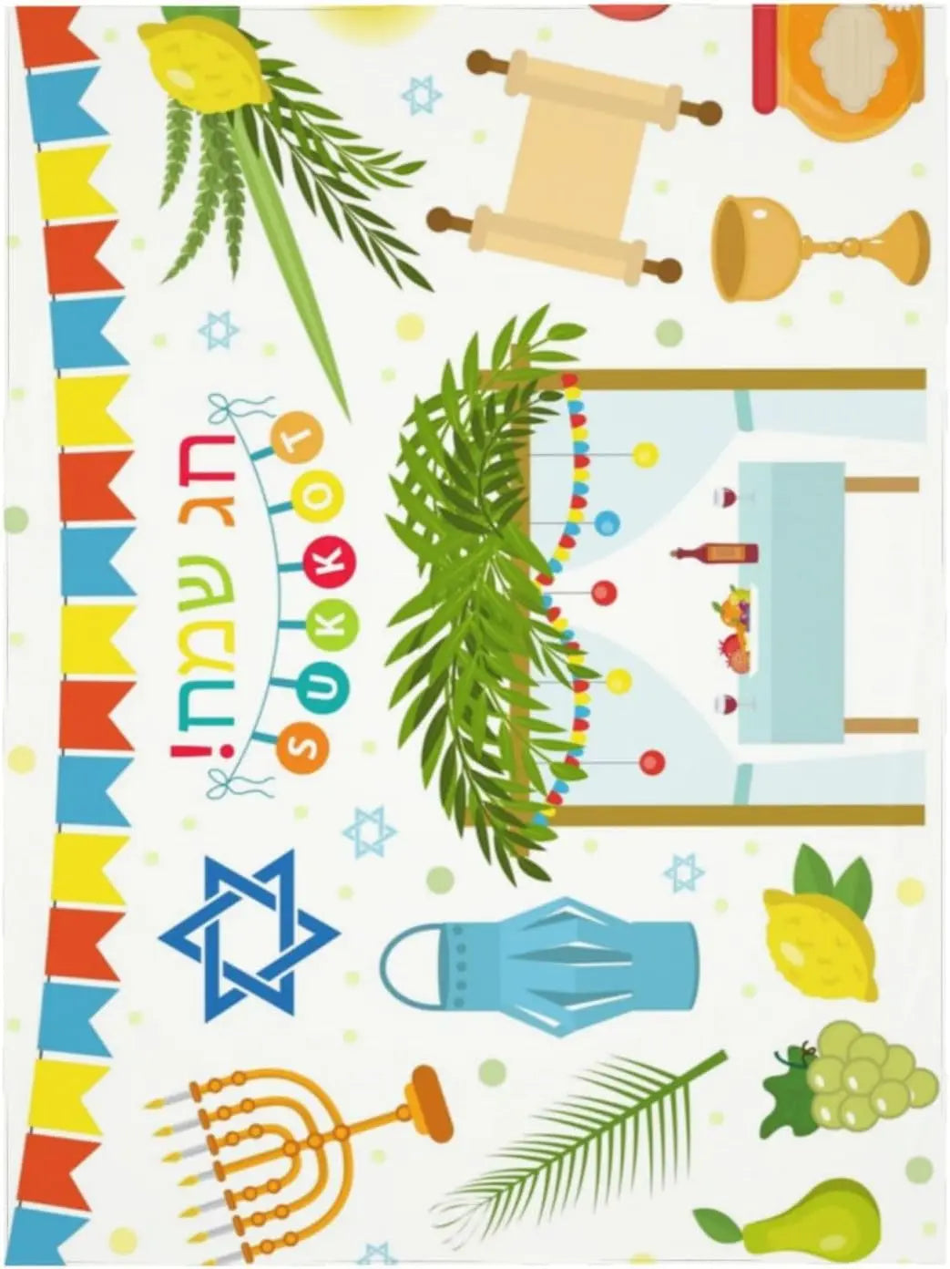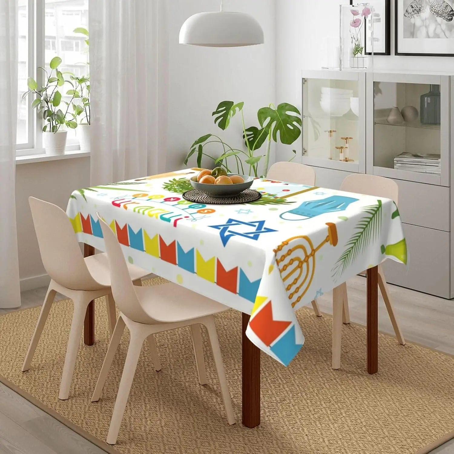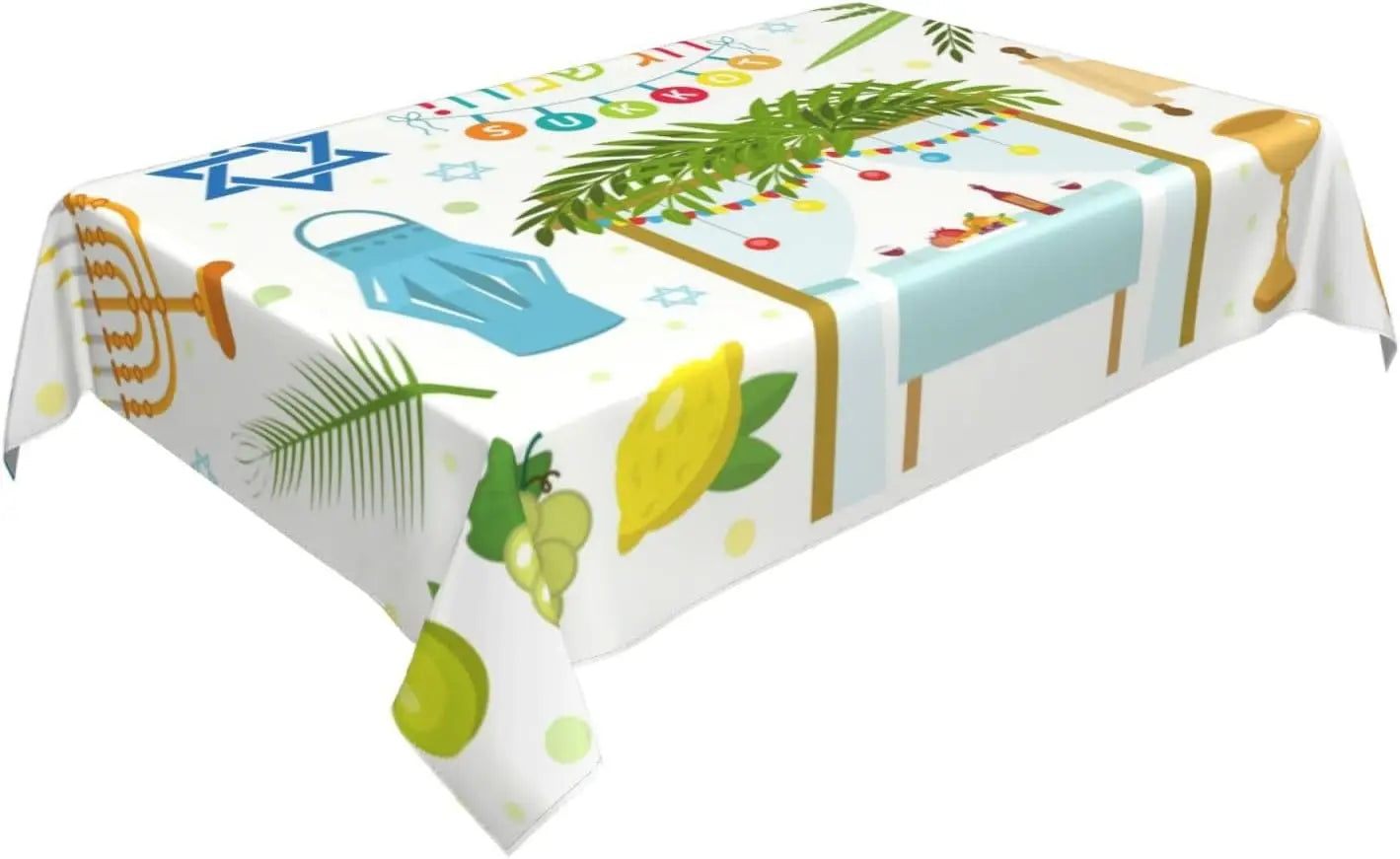 Happy Sukkot Polyester Tablecloth Washable Etrog Lulav Sukkah Waterproof Table Cloths Home Decoration Kitchen Dining Table Decor