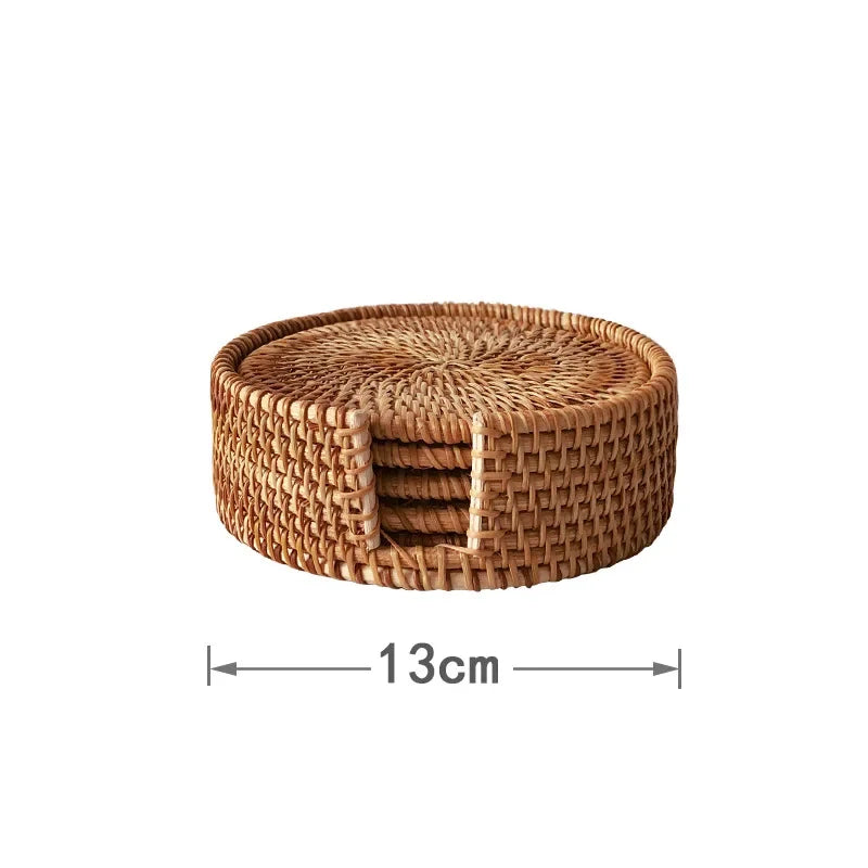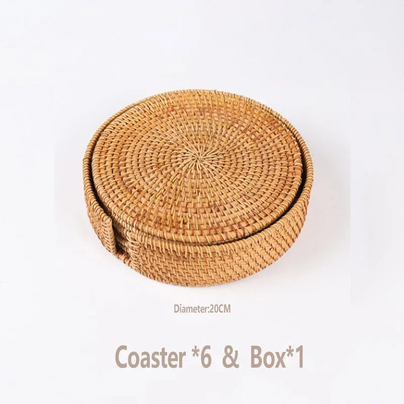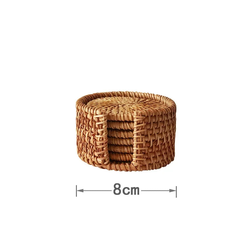 HEMU-Handmade Insulated Table Mats, Heat Resistant, Scald Resistant Rattan, Dining Tables, Plates, Coasters, Household Use, 6Pcs