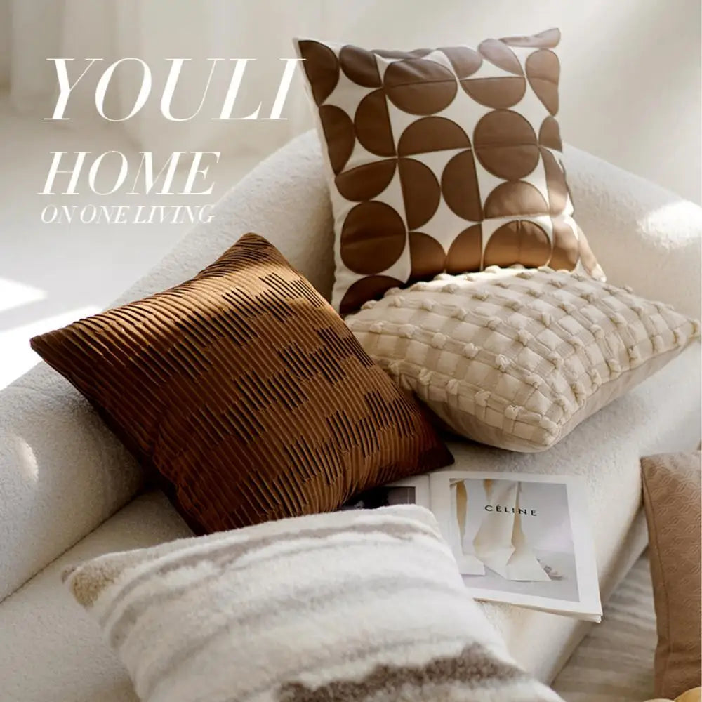 High-Grade French Coffee Brown Pillow Case Wabi-Sabi Wind Pillow Cover Modern Simple Living Room Homestay Sofa Bed Cushion Cover