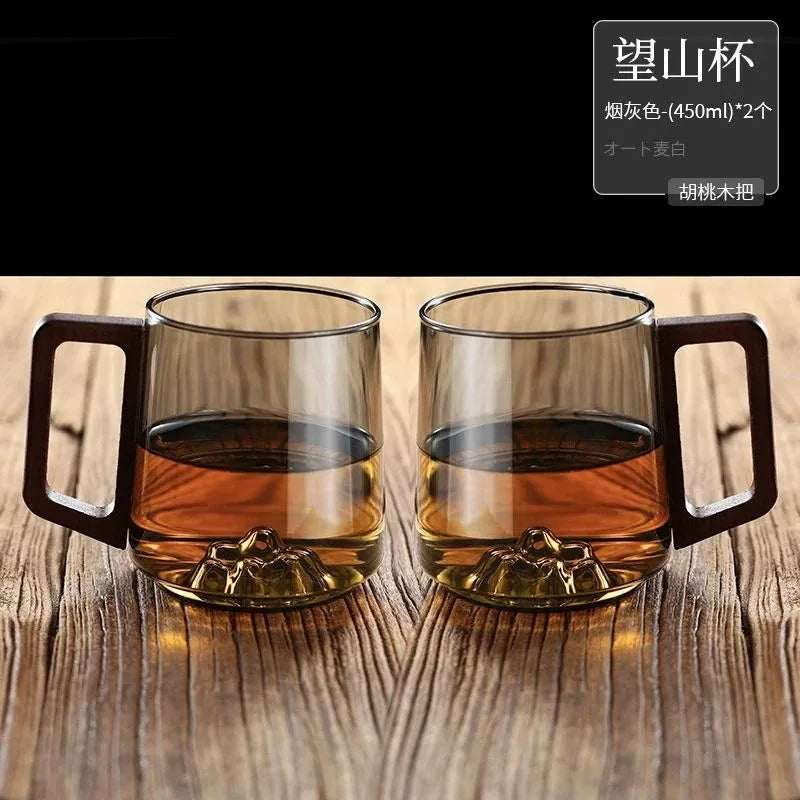 High Temperature Resistant Office Household Wood Handle Guanshan Green Tea Glass Cup Borosilicate Glass Cup