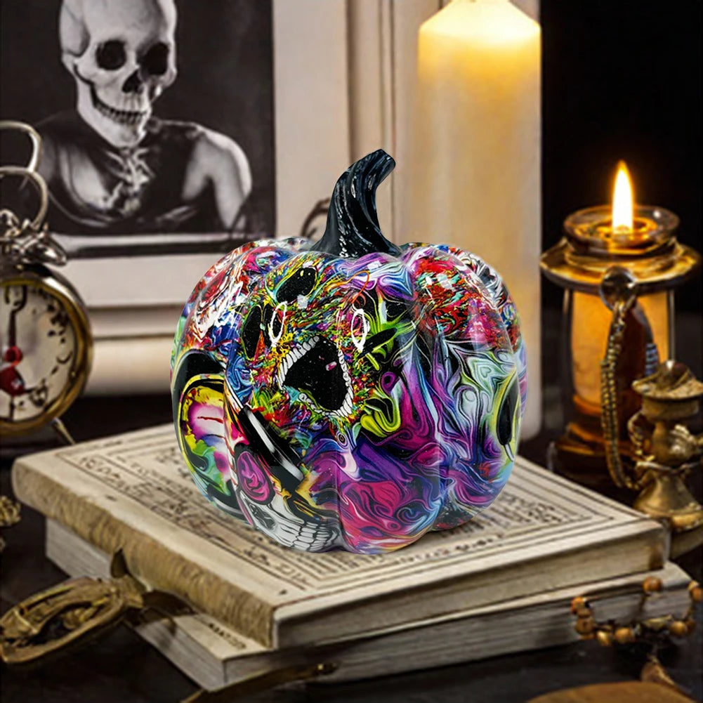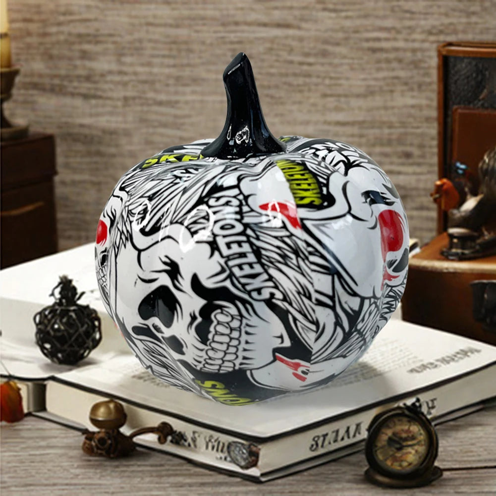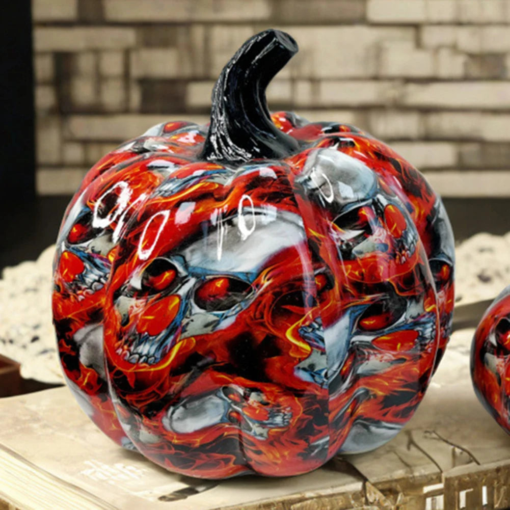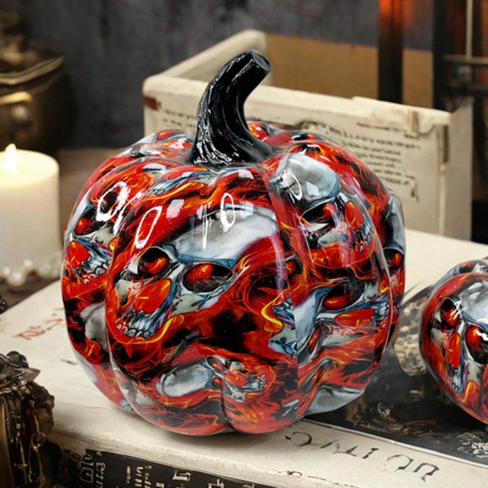Horror Skull Halloween Pumpkin Decoration Resin Pumpkin Figurines Halloween Pumpkin Desktop Ornaments for Home Decor