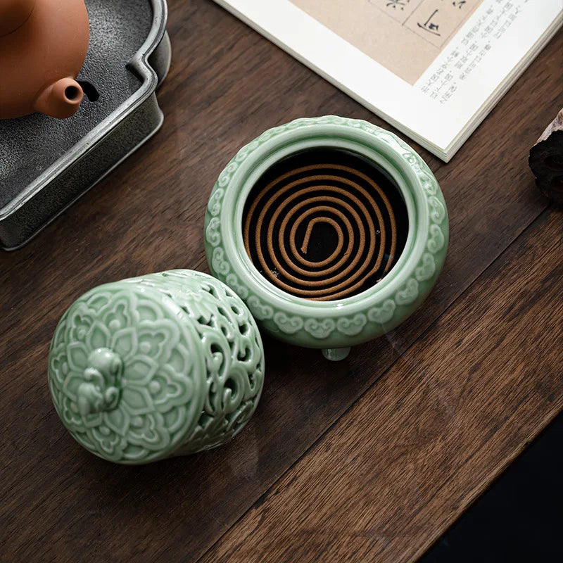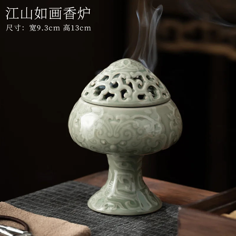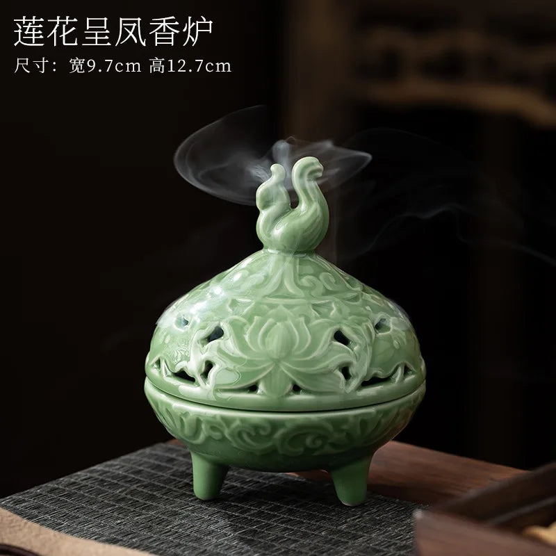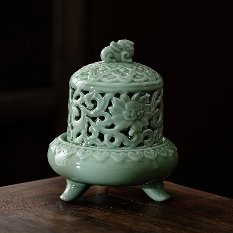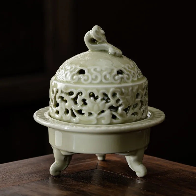 Household Celadon Brave Incense Burner Indoor Tea Ceremony Ornaments Ceramic Antique Three-legged Incense Burner