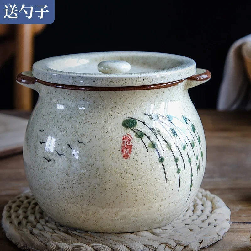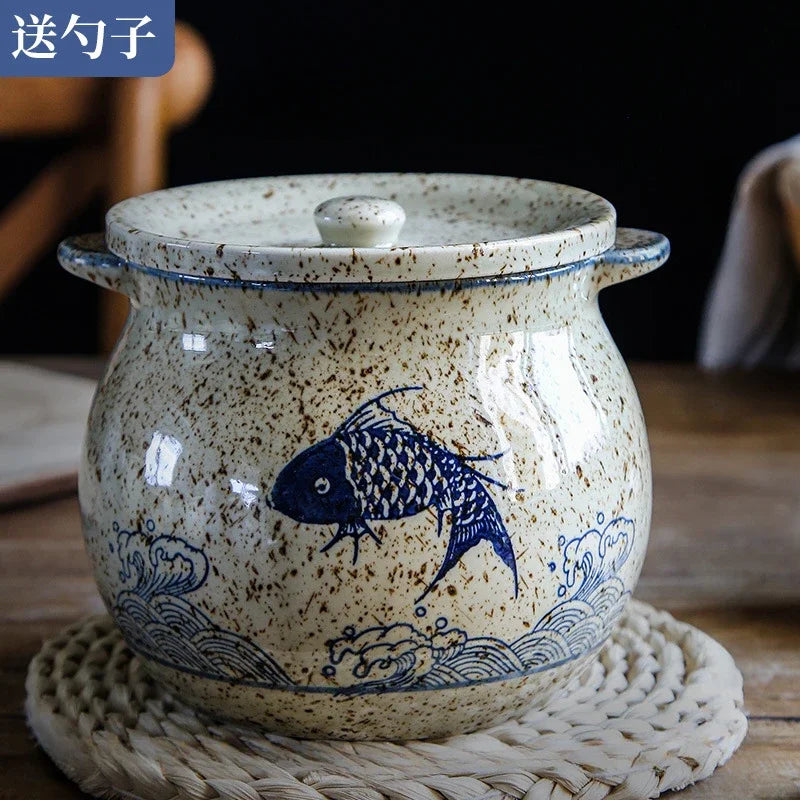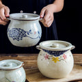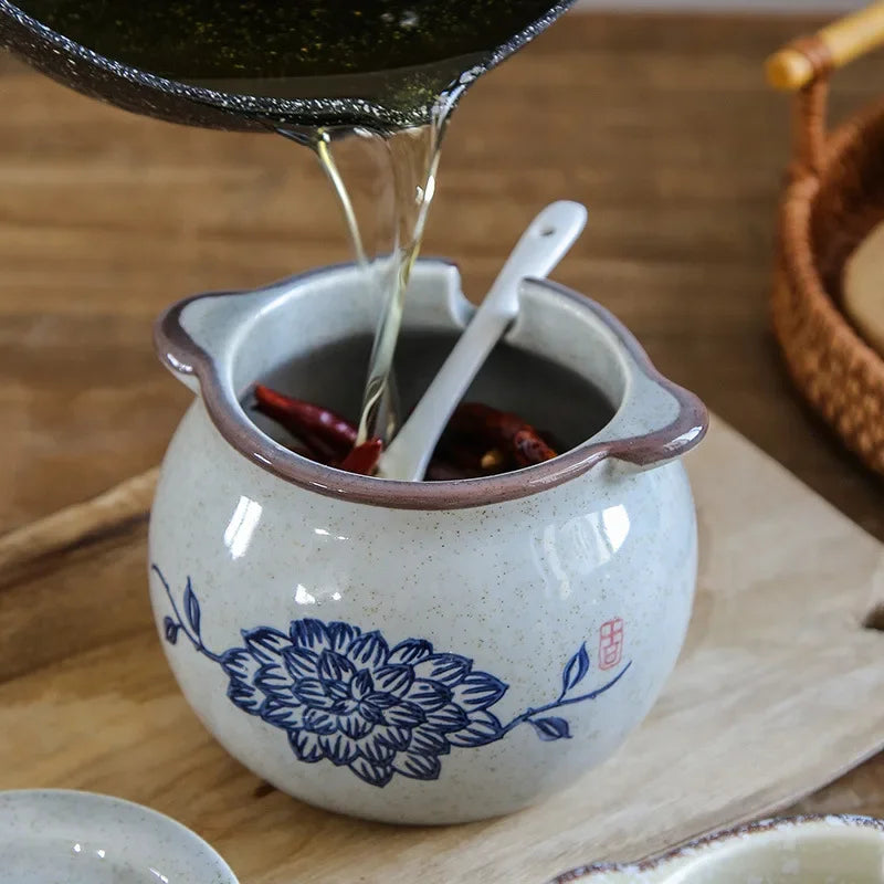 Household Ceramic High-temperature Oil Tank Salt Pot Seasoning Pot Kitchen Chili Oil Seasoning Can Sugar Can Storage Containers
