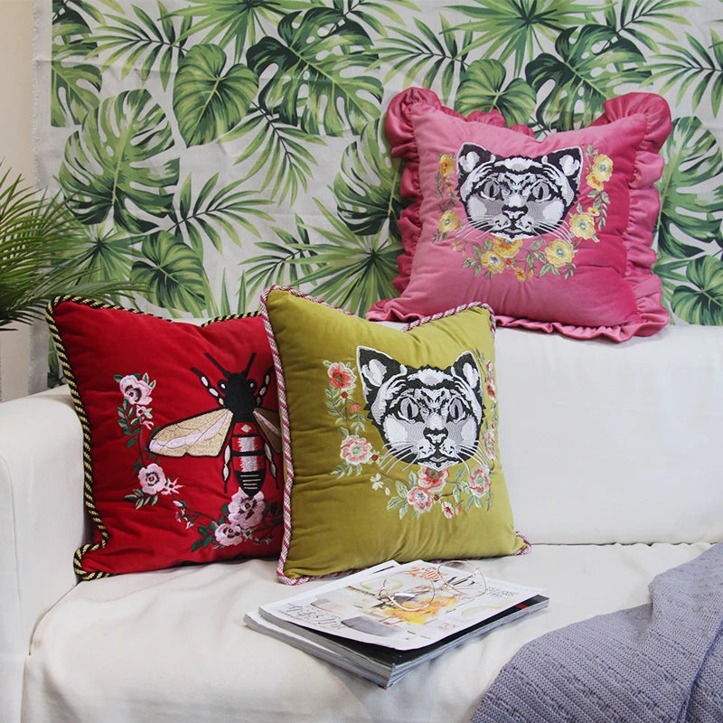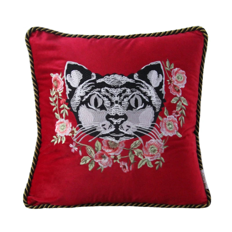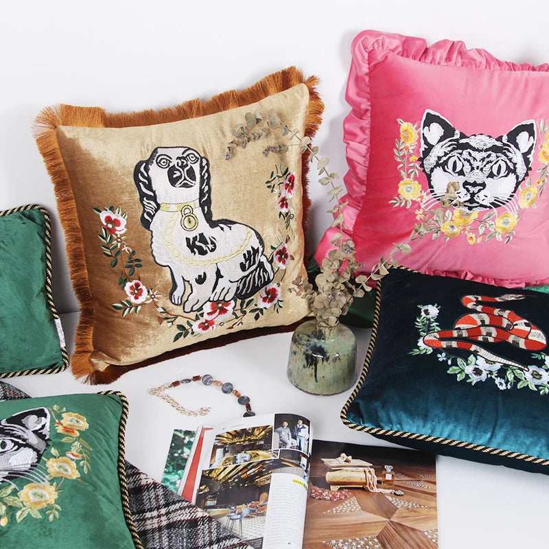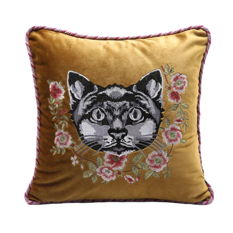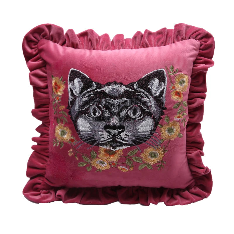 Household Luxury Velvet Embroidery Pillow Covers, Lovely Cat Couch Cushion Cover, Tassels Throw Pillowcase Cover, Square