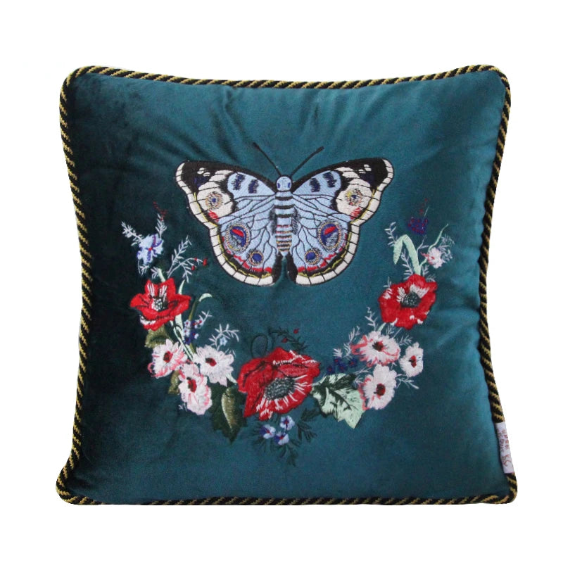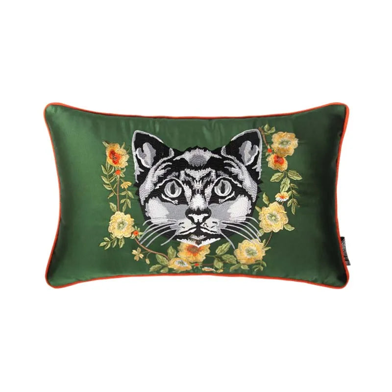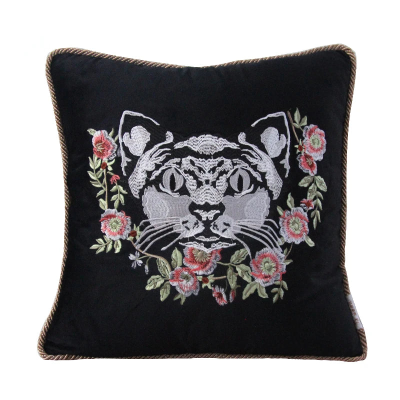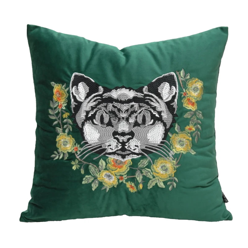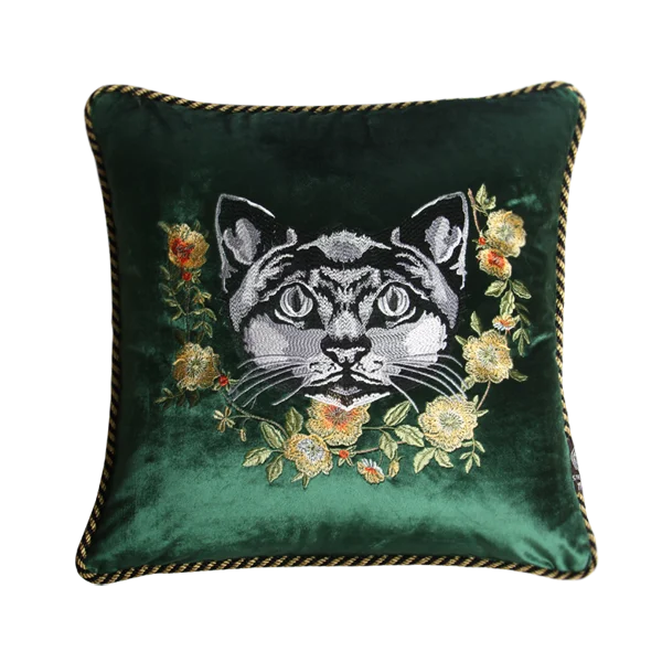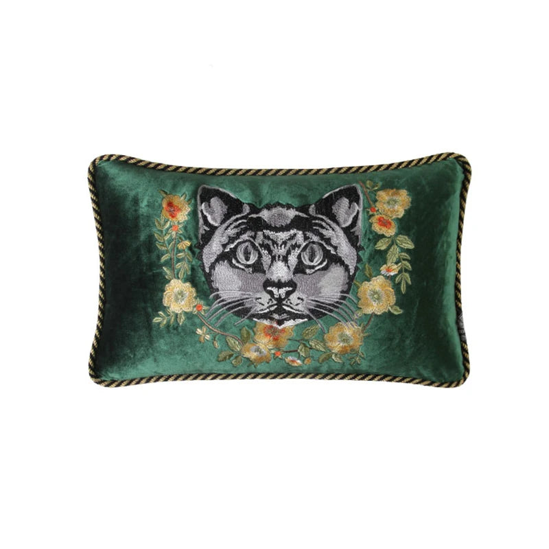 Household Luxury Velvet Embroidery Pillow Covers, Lovely Cat Couch Cushion Cover, Tassels Throw Pillowcase Cover, Square