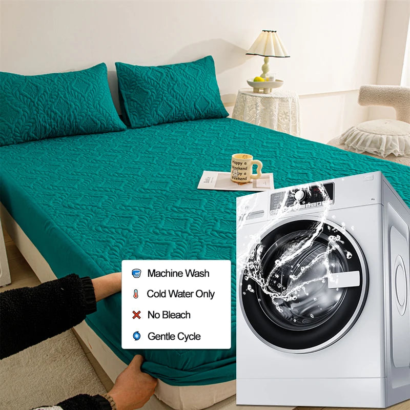 Hypoallergenic Waterproof Mattress Protector - Breathable Anti-Mite & Anti-Bacterial Mattress Cover, Single/Double, Lnk green
