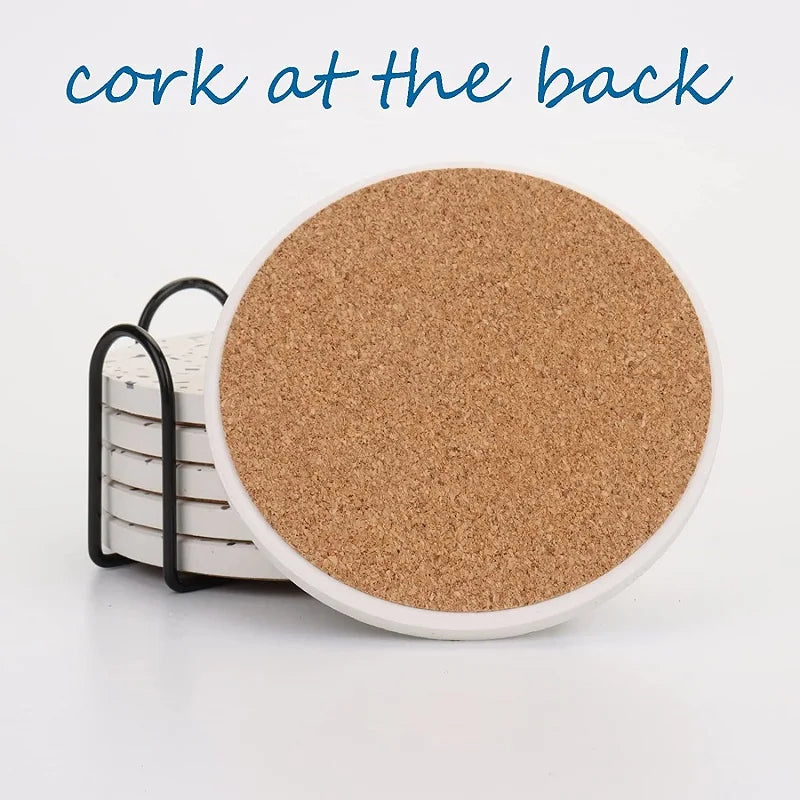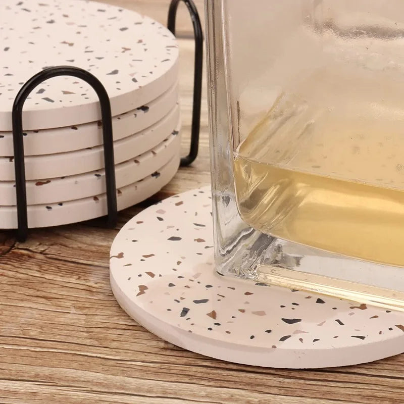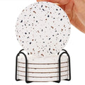 Inyahome Terrazzo Pattern Coasters for Drinks Set of 1/4/6 Coffee Table Ceramic Stone Modern Bar Tools for Drinks Mug Round Mats