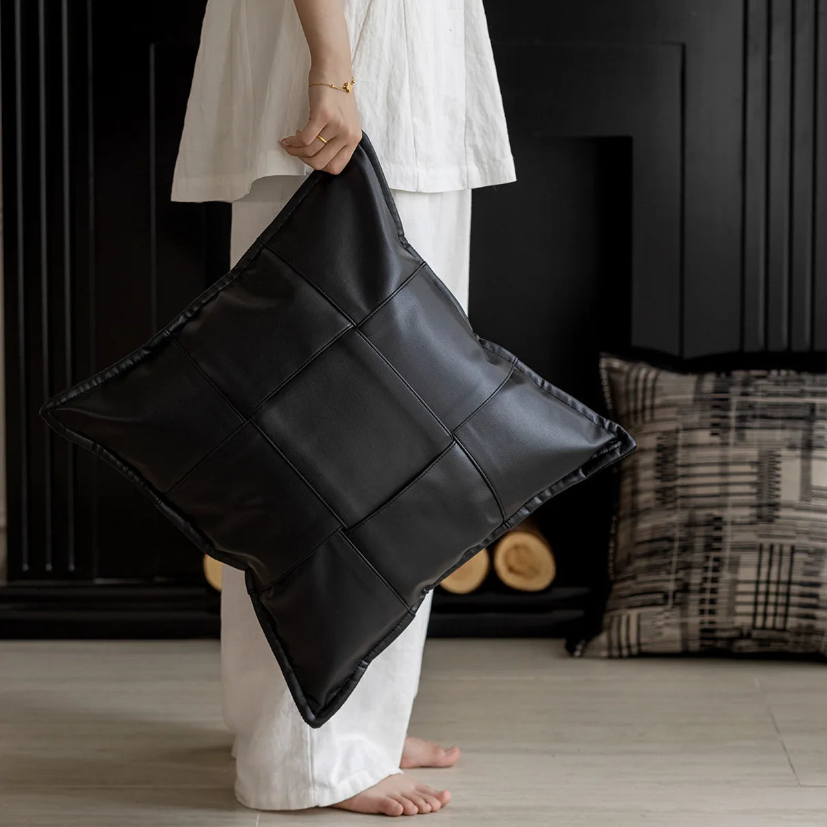 Italian Leather Woven Cushion Cover Advanced Luxury Retro Pillow Covers Decorative Black Jacquard Pillowcase for Home Decor