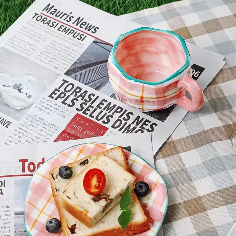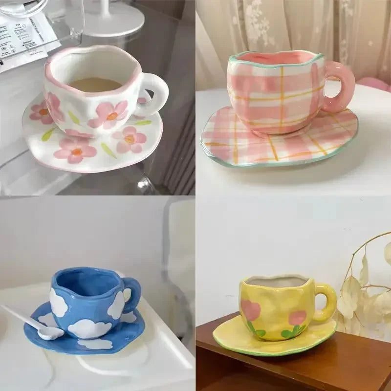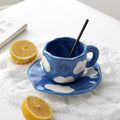 Japanese Hand Painted The Blue Sky and White Clouds Coffee Cup with Saucer Ceramic Handmade Tea Cup Saucer Set Cute Gift for Her