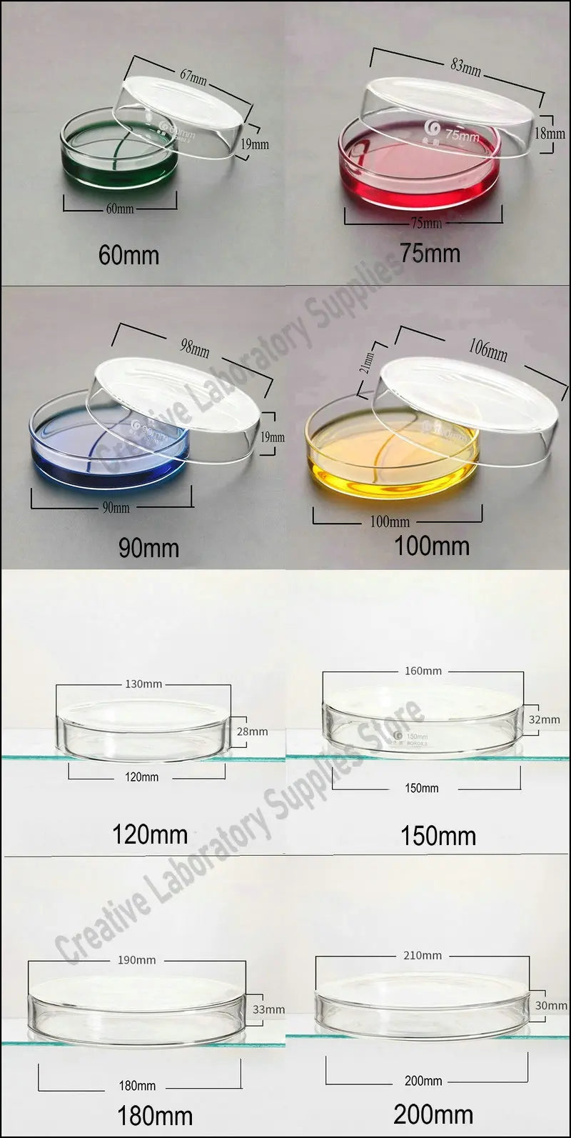 Laboratory 35mm to 200mm Glass Cell bacterial Culture Dish, high-temperature resistant biological Petri dish experimental vessel