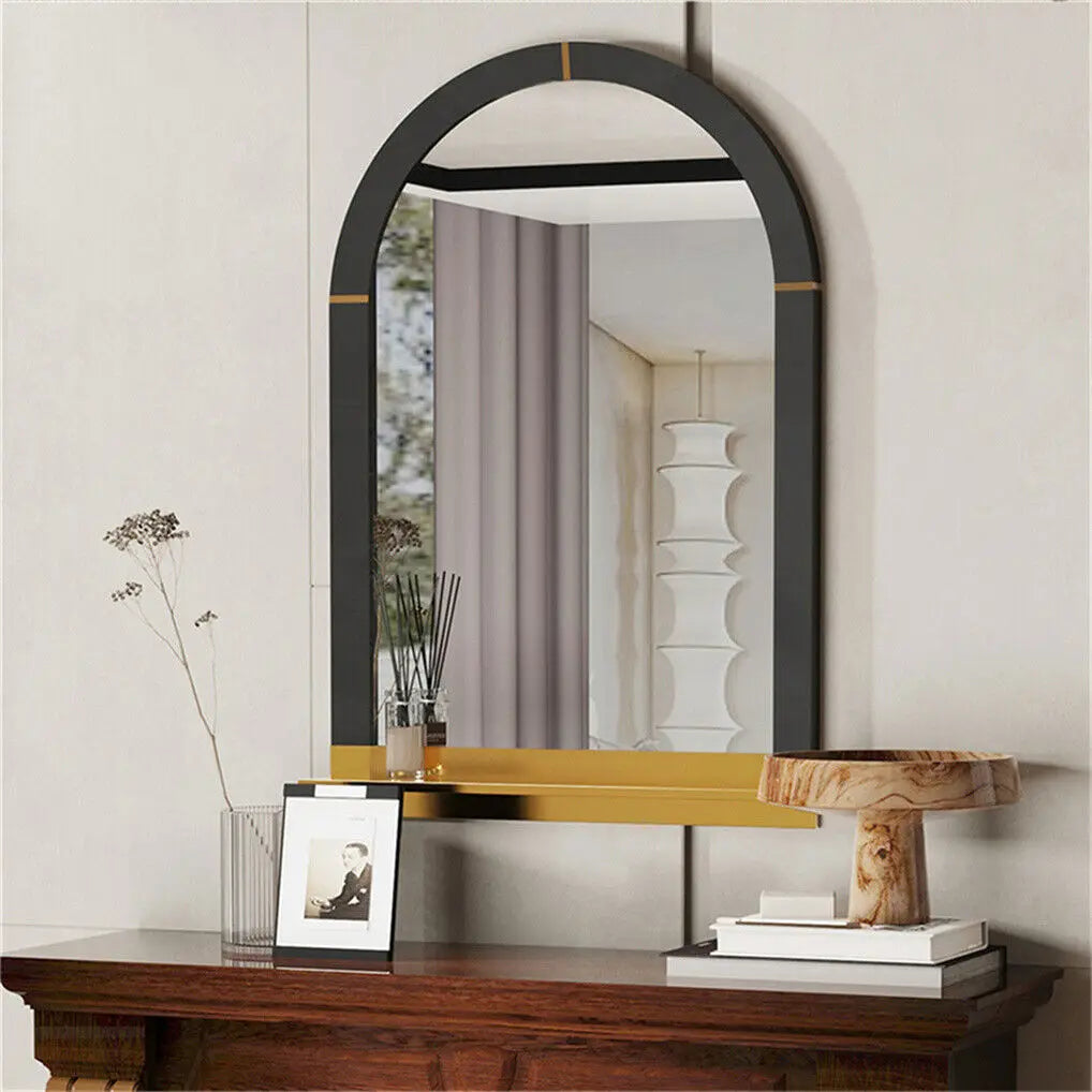 Large Decorative Wall Mirror Arch Vanity with Metal Floating Shelving Home Furnishing Art Deco for Livingroom Fireplace Home