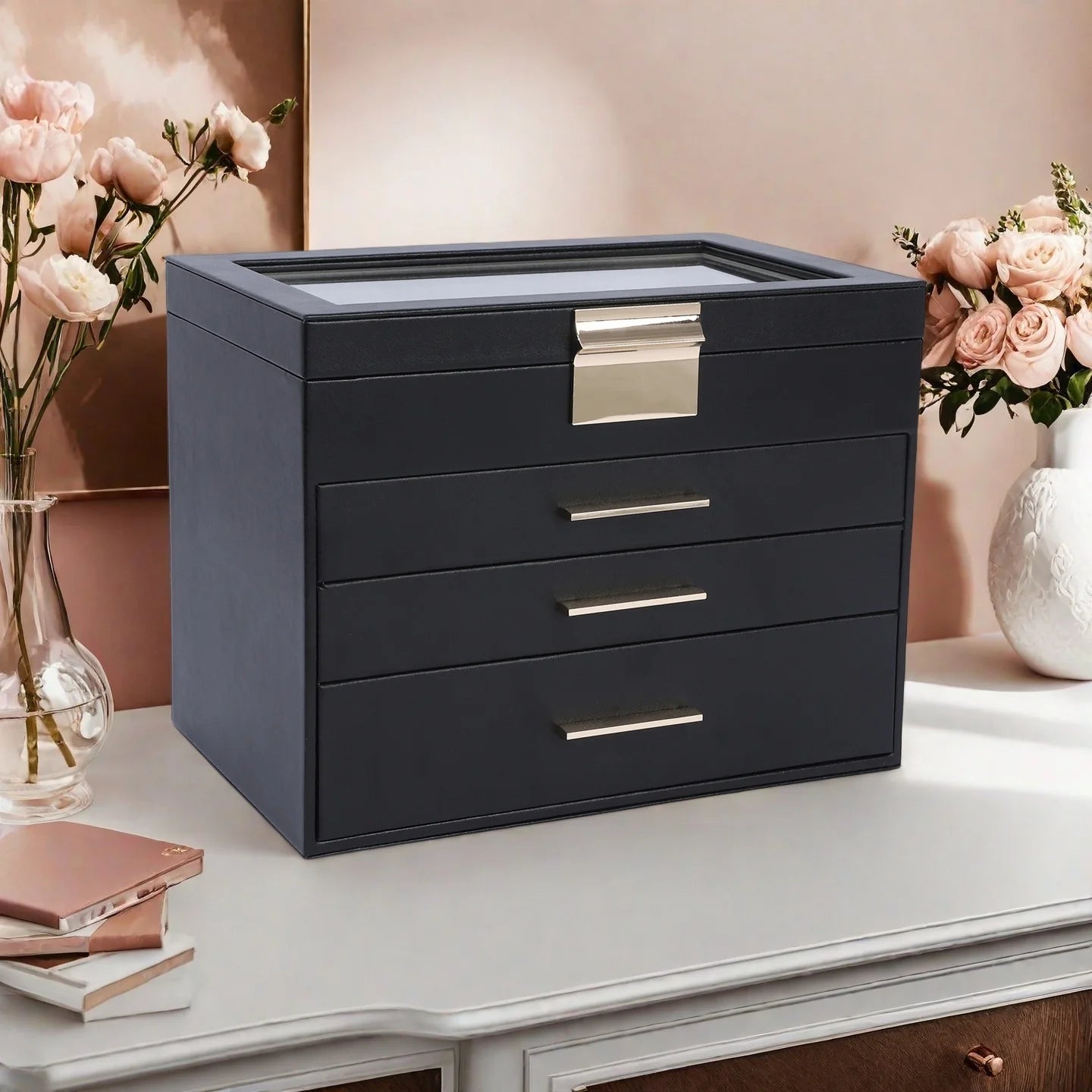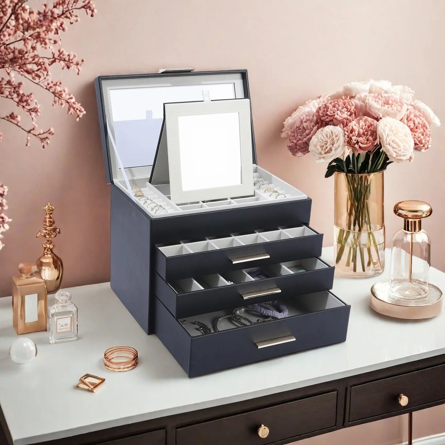 Organize and protect your jewelry collection with our Large PU Leather Jewelry Box, crafted for elegance, durability, and functionality. With multiple drawers, a built-in mirror, and spacious compartments, it keeps rings, bracelets, necklaces, and earrings perfectly arranged. Ideal for personal use, travel, or as a luxury gift.