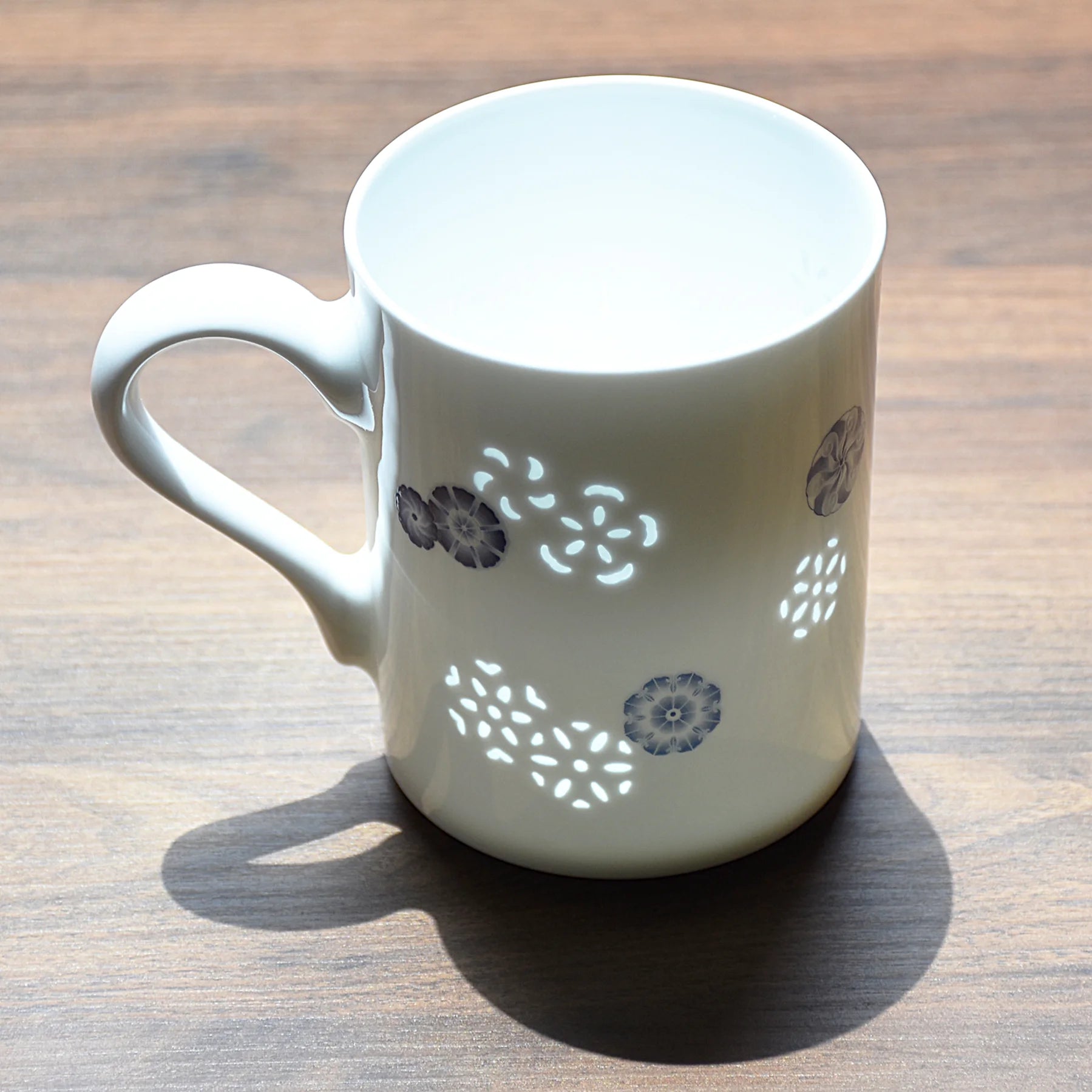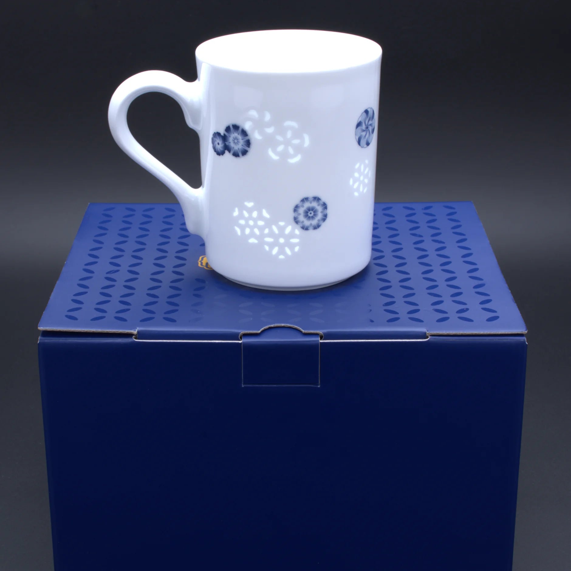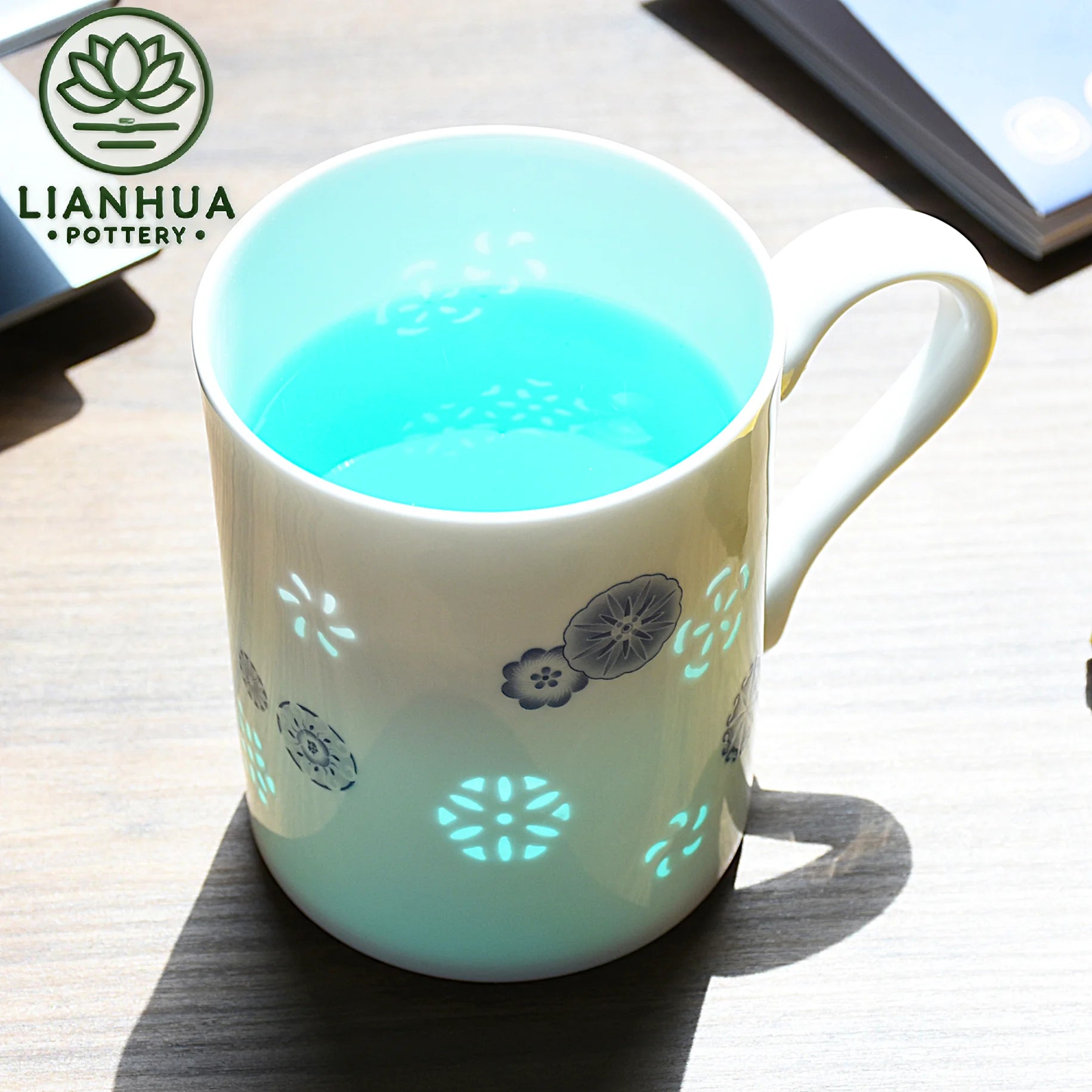 LIANHUA POTTERY Linglong Porcelain Mug 350ml Handcrafted Blue Floral Design Luxury Wedding Anniversary and Birthday Gift