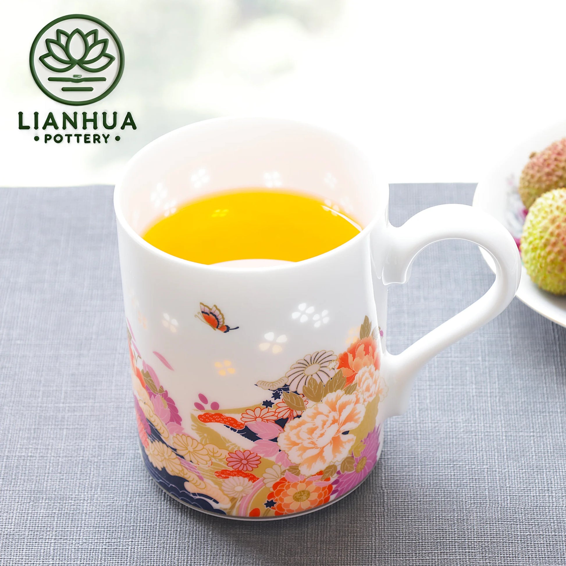 LIANHUA POTTERY Linglong Porcelain Mug 350ml Handcrafted Garden Design Drinkware Luxury Wedding Anniversary and Birthday Gift